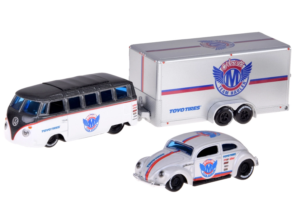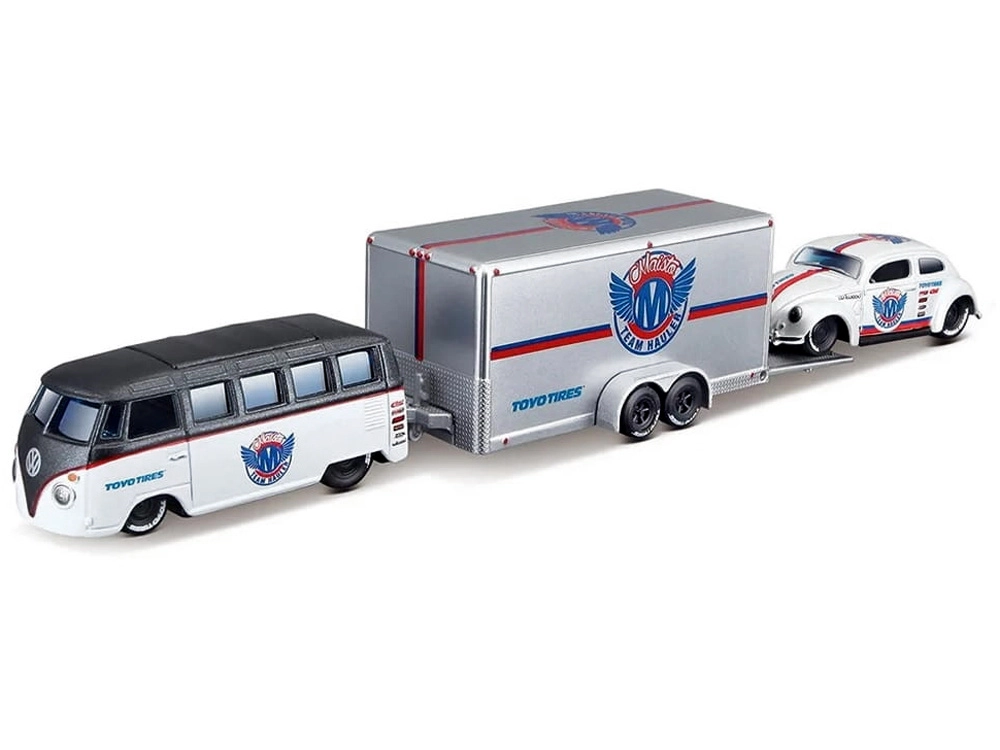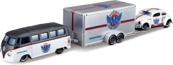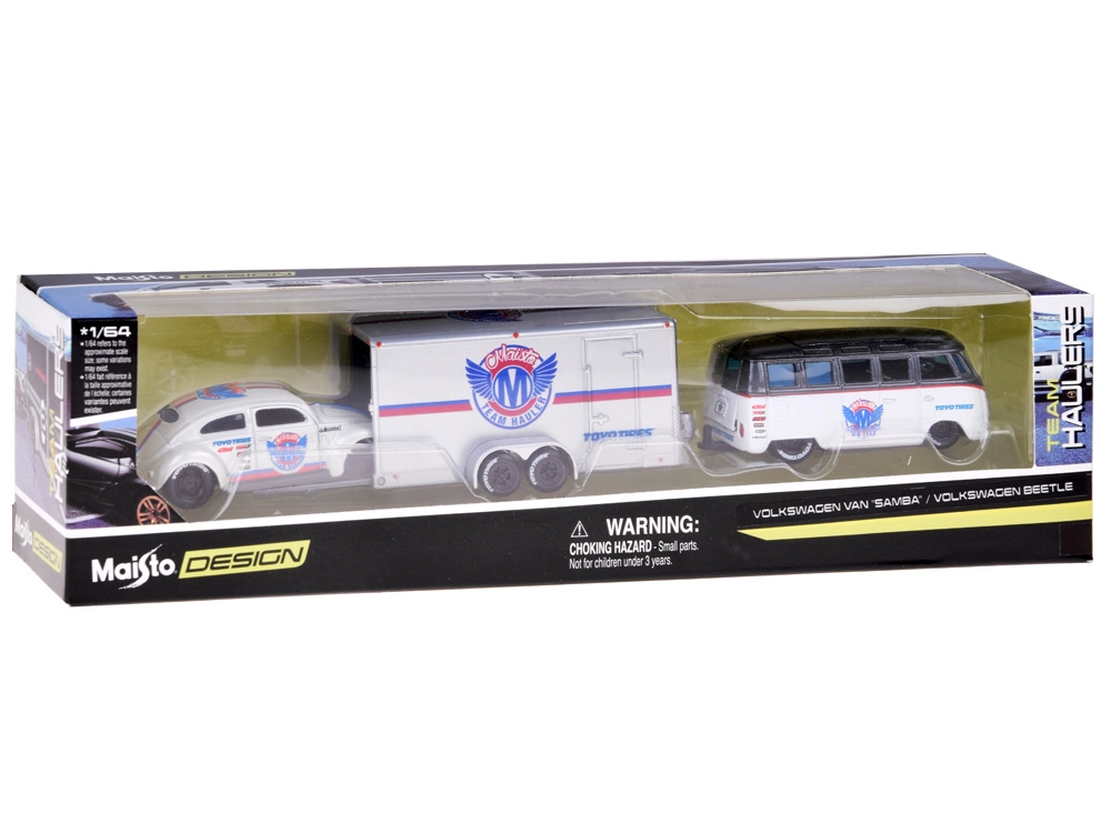 Volkswagen Van Samba aprūpintas vilkimo kabliu priekabai prikabinti; prireikus kablį galima nuimti, priekabą galima atkabinti ir be kablio išsukimo. Visas rinkinys puikiai tinka klasikinių automobilių entuziastams, 1:64 mastelio kolekcininkams ir vaikams, mėgstantiems kūrybišką žaidimą.