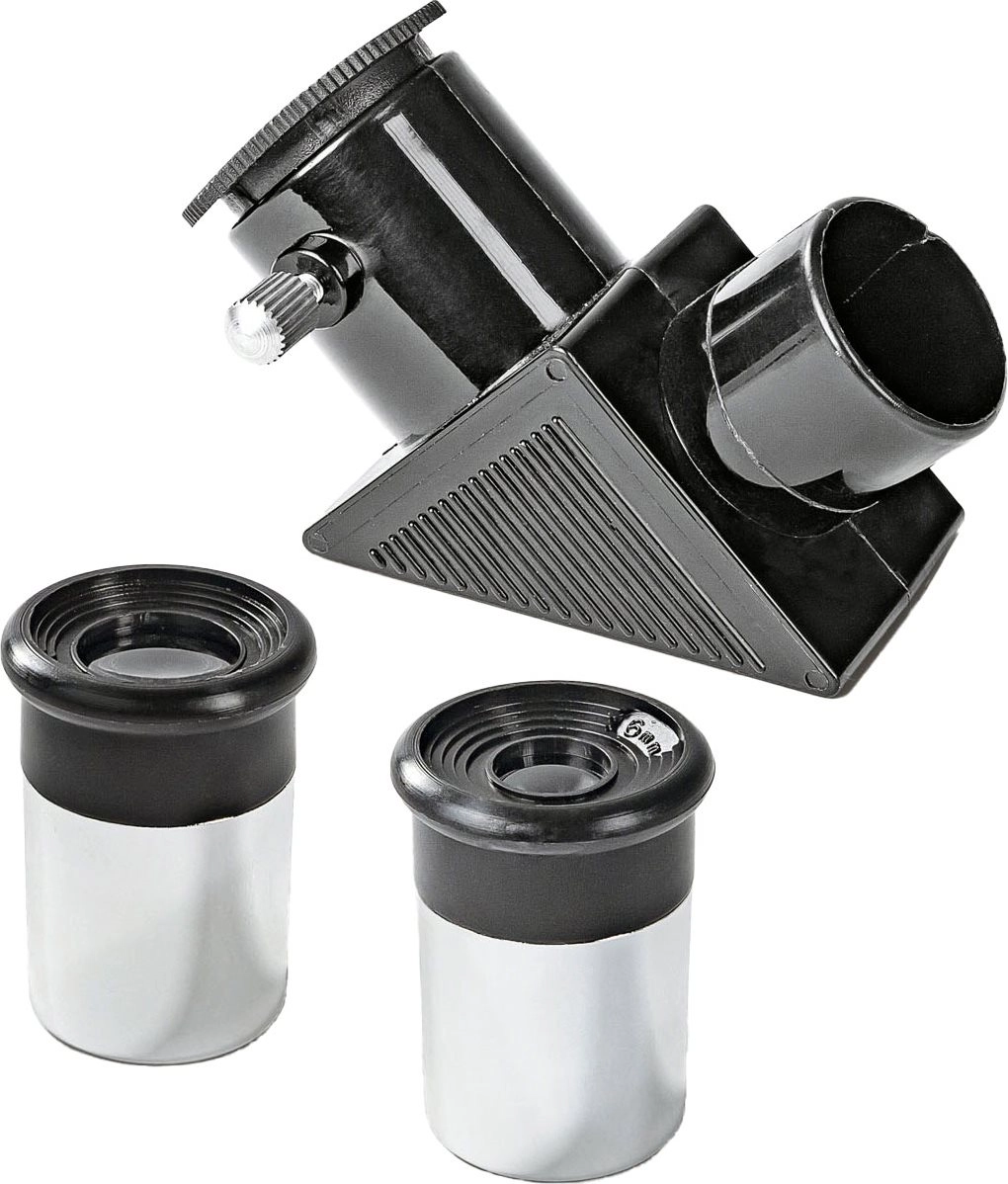 - Teleskopas, 2 okuliariai, Barlow lęšis, trikojis, iliustruotas vadovas