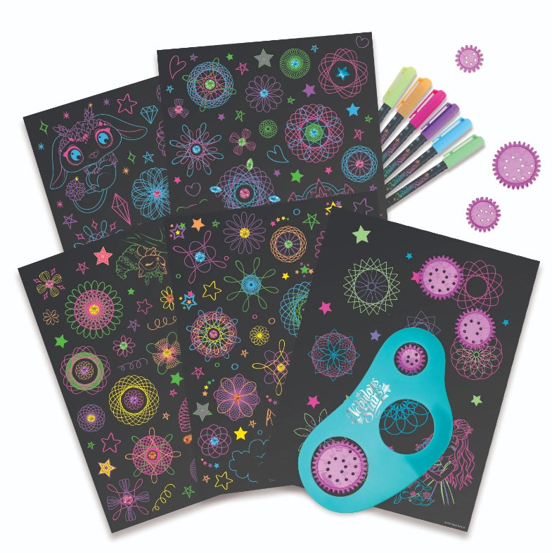 - Paprasta ir smagu – įdėkite ratuką į šabloną, pieškite neoniniu rašikliu ir stebėkite, kaip gimsta kerinčios spiralės.