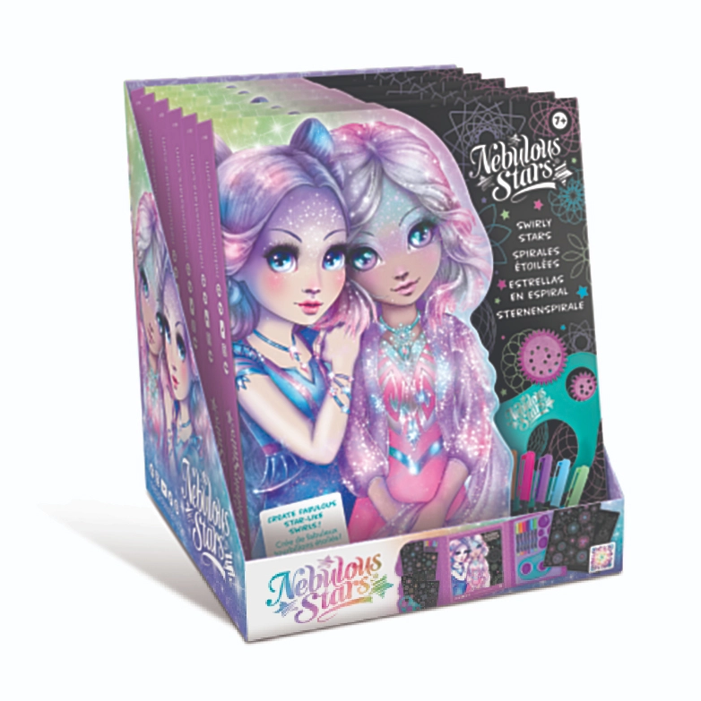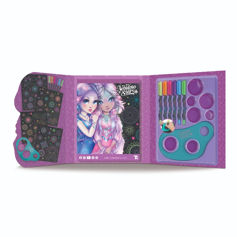 Ženkite į žvaigždėtą NEBULOUS STARS pasaulį ir įsukite fantaziją su originaliu spiralėms piešti skirtu rinkiniu. Juodi puslapiai puikiai išryškina neonines spalvas, o šablonas su 7 ratukais leis lengvai kurti tobulai taisyklingus ar žaismingai derinamus spiralinius raštus.