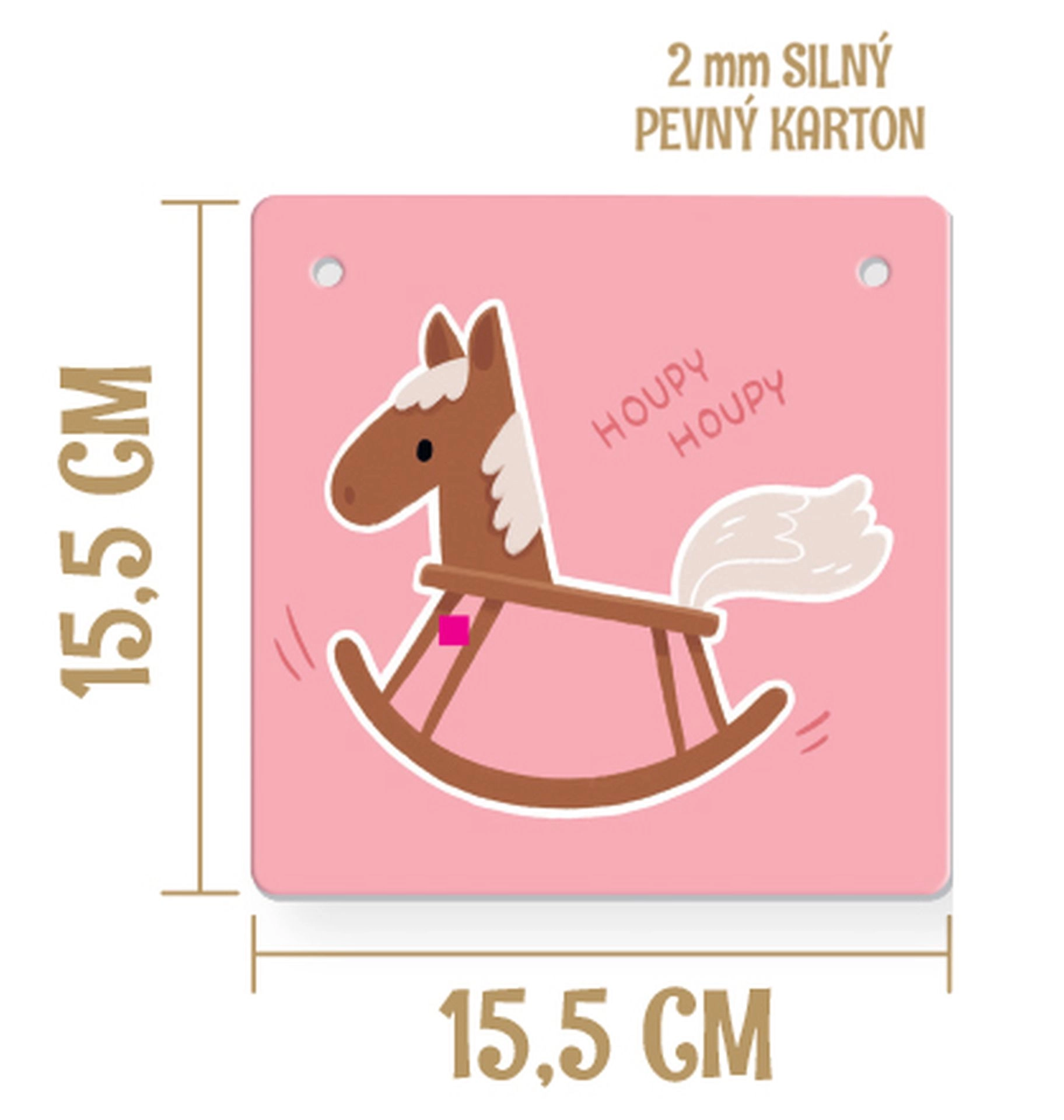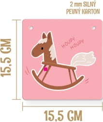 15,5 × 15,5 cm formatas iš 2 mm FSC kartono be plastiko. Idealios mažoms vaikų rankoms, saugios ir ilgaamžės.