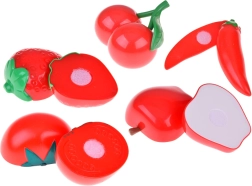 Šis didelis vaikiško plastikinio maisto rinkinys jungia pramogą ir mokymąsi. Vaikai gali „pjaustyti“ dalis perpus ir vėl sujungti lipukais, rūšiuoti jas pagal spalvą į krepšelius ir žaismingai mokytis vaisių bei daržovių pavadinimų. Realistiškos formos ir ryškios spalvos skatina tyrinėti ir kurti vaidmeninius žaidimus vaikiškoje virtuvėlėje.
