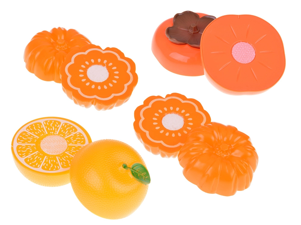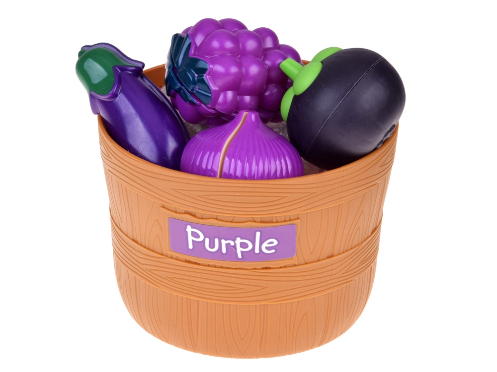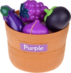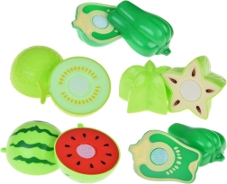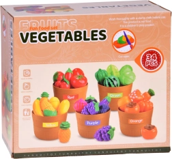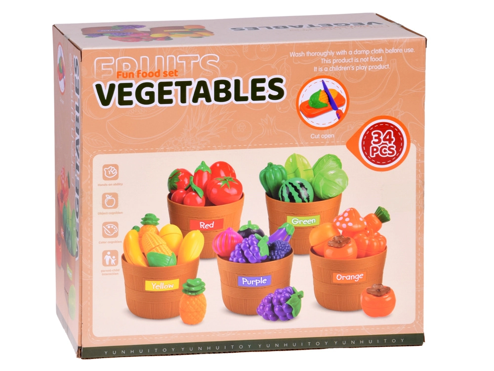 Žaismingas ir lavinamasis rinkinys mažiesiems virtuvės šefams: plastikiniai vaisiai ir daržovės su lipukais, spalvoti krepšeliai ir rūšiavimo priedai. Skatina smulkiosios motorikos lavinimą, spalvų pažinimą ir vaisių bei daržovių rūšių atpažinimą. Saugus „pjaustymas“ ant pjaustymo lentelės su peiliais suteikia realistinį kulinarinį žaidimą ir daug linksmybių.