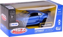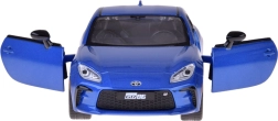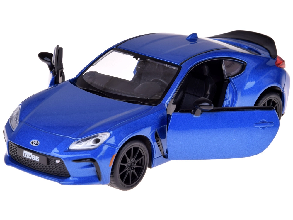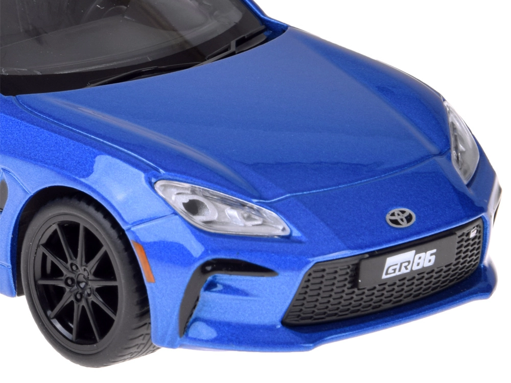 Detaliai išdirbtas TOYOTA GR86 modelis patrauklios mėlynos metalizuotos spalvos sužavės kokybišku atlikimu ir realistiškomis proporcijomis. Metalinis kėbulas su plastikine važiuokle ir guminiai ratai užtikrina sklandų ir tylų judėjimą, o atsidarančios durelės aktyvuoja žibintus bei variklio ir garso signalo efektus.