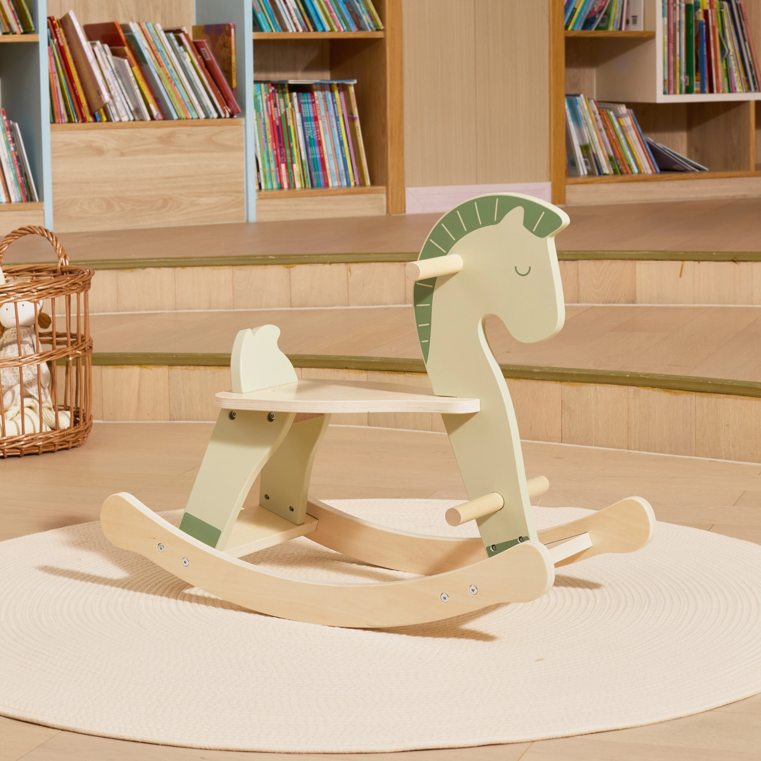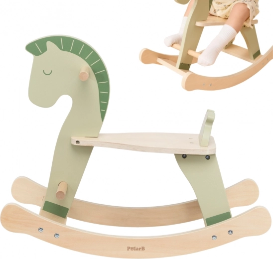 Šis medinis supamas arkliukas švelnios pasteliai žalios spalvos yra puikus palydovas pirmai kelionei namuose. Jis skatina natūralų pusiausvyros, motorikos ir pasitikėjimo savimi vaiko raidą. Dėl tvirtų rankenų ir pakojų vaikai jaučiasi užtikrintai ir saugiai, o glotniai suformuotos lingės užtikrina sklandų ir stabilų supimąsi.