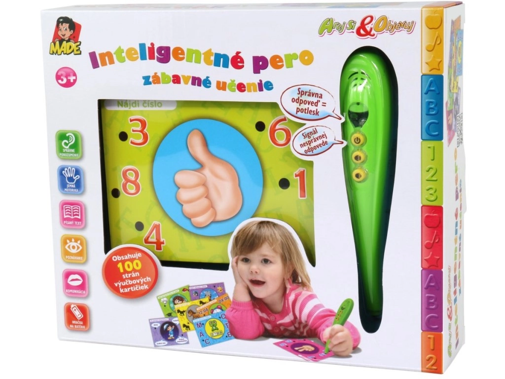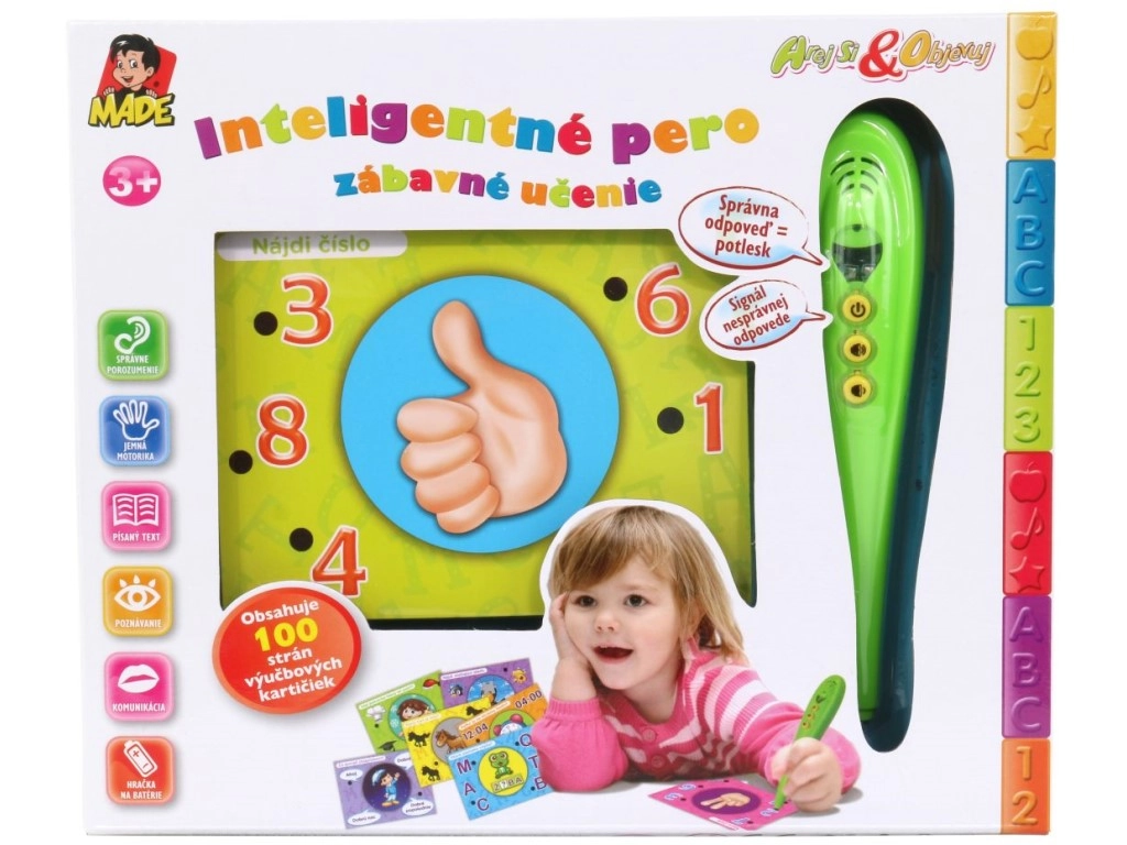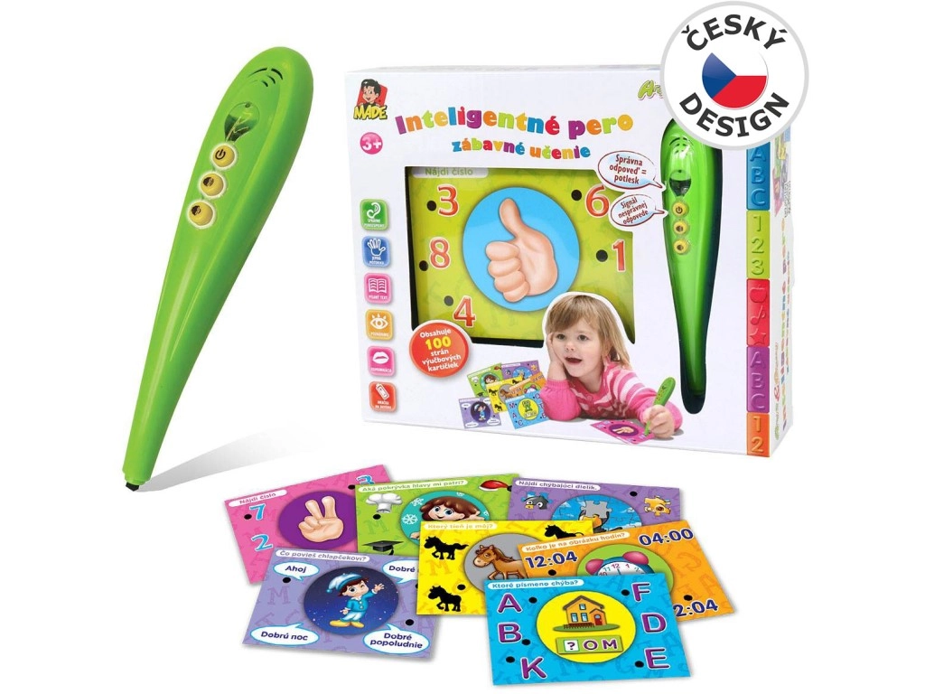 Atraskite smagų mokymąsi su rinkiniu, kuris sujungia išmanų interaktyvų rašiklį ir spalvingas mokomąsias korteles slovakų kalba. Vaikai priglaudžia rašiklį prie pasirinkto atsakymo – žalia lemputė rodo teisingai, raudona – neteisingai. Yra garsumo reguliavimas, kompaktiški matmenys ir paprastas valdymas tiek priešmokyklinukams, tiek pradinukams.