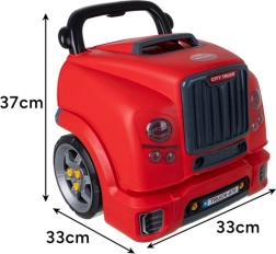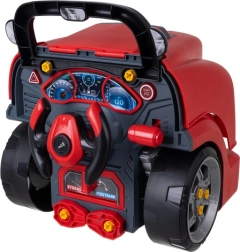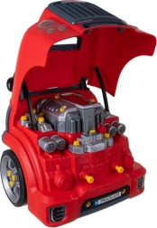 Pilna mechanikos dirbtuvė vaikams nuo 3 metų siūlo raudoną automobilį su atverčiamu kapotu, detalų „variklį“, valdymo elementus ir vaikiškus įrankius. Dėl varžtų, ratų ir judančių dalių vaikai lavina koordinaciją ir supranta pagrindinius transporto priemonės veikimo principus saugioje ir linksmoje aplinkoje.