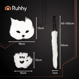 Stilingas ir žaismingas RUHHY 4 viename rinkinys baltos spalvos – puikus pasirinkimas cosplay gerbėjams, FURRY/Therian bendruomenei bei anime ir alternatyvios estetikos mylėtojams. Kaukė su gumele patogiai priglunda, ilga reguliuojama uodega su lanksčiu laidu lengvai formuojama į bet kokią formą, o letenėlės/pirštinės užbaigia visą įvaizdį. Lengva konstrukcija užtikrina komfortą net ilgai dėvint.