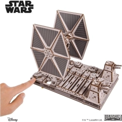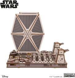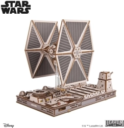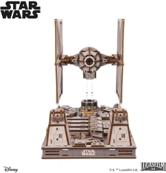 Gerbėjus pradžiugins detalus kabinos interjeras, judantys lazeriniai pabūklai ir spalvota fanera, suteikianti modeliui realistišką išvaizdą. Surinkimas vyksta be klijų ir įrankių, o vidutinis sudėtingumas garantuoja įdomų projektą labiau patyrusiems statytojams. Modelis yra suderinamas su Ugears Luke’o Skywalkerio X‑Wing naikintuvu – stovus galima sujungti ir sukurti įtemptą Mirties žvaigždės sceną.