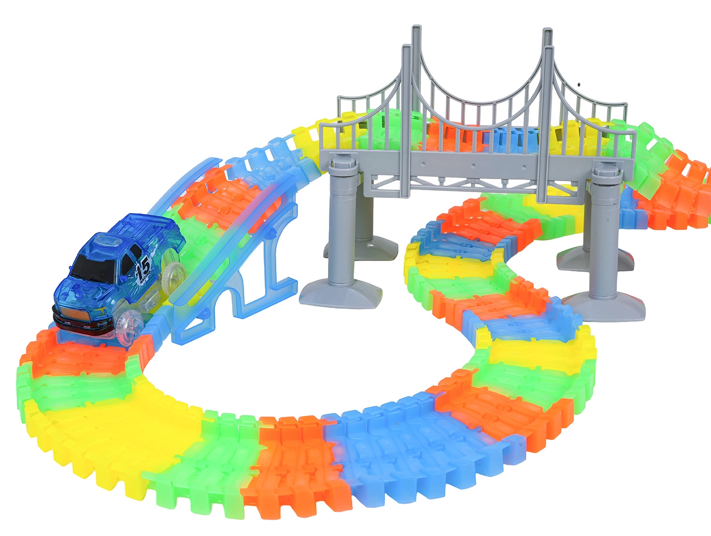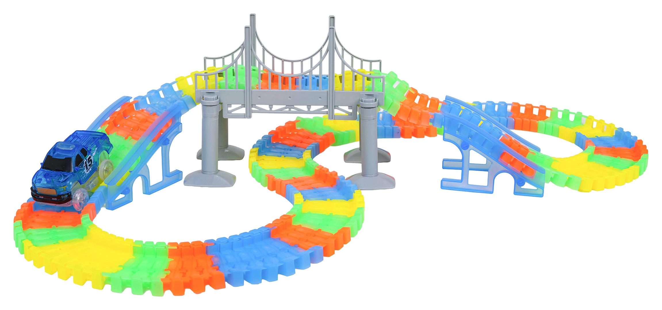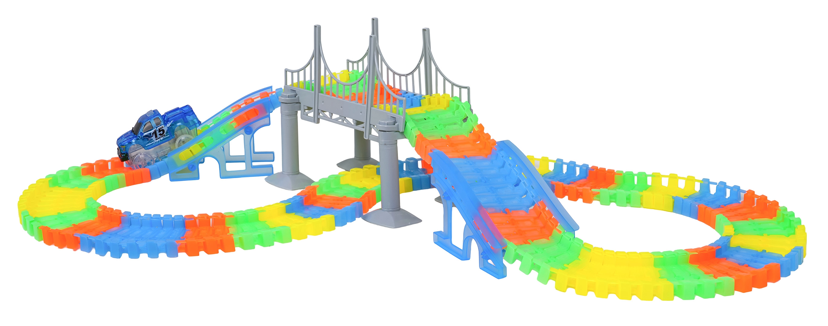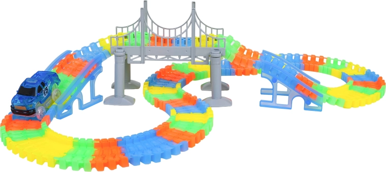 Ši kūrybinė lenktynių trasa suteikia vaikams nuo 3 metų valandas išradingo žaidimo. Dalys lengvai susikabina, trasa yra lanksti ir pasukama, todėl galite kurti tiltus, rampas ir drąsius posūkius. Fluorescenciniai bėgiai apšviečia kambarį užgesinus šviesas.