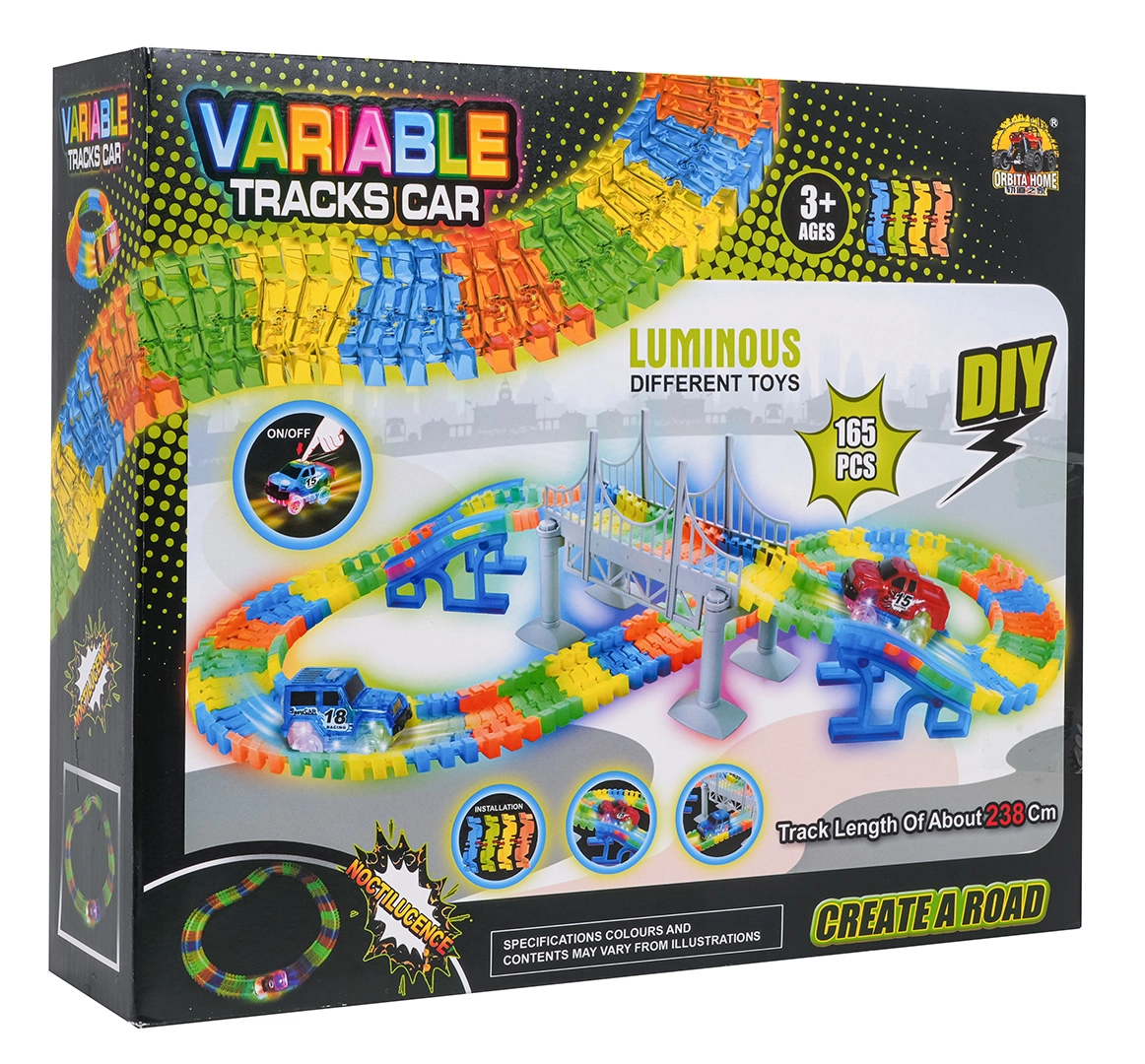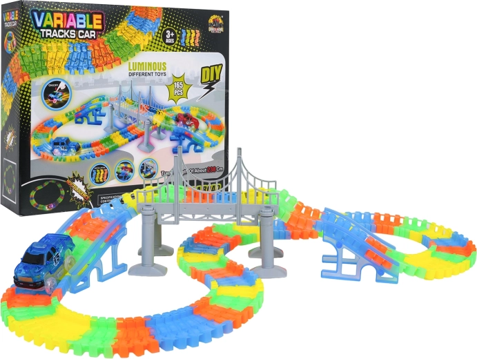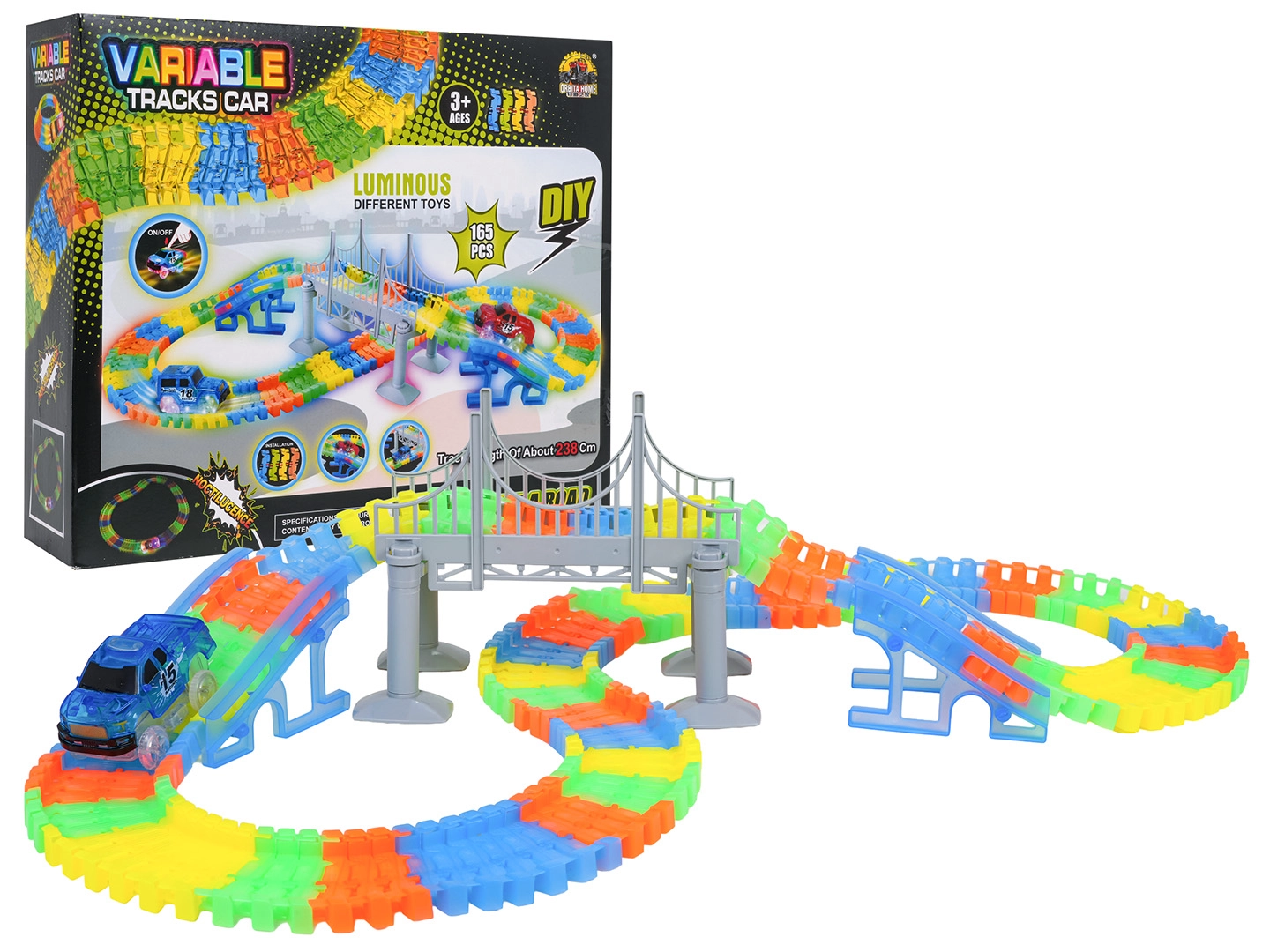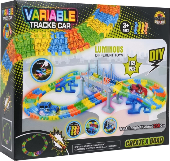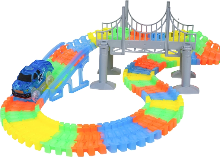 Ši kūrybinė lenktynių trasa suteikia vaikams nuo 3 metų valandas išradingo žaidimo. Dalys lengvai susikabina, trasa yra lanksti ir pasukama, todėl galite kurti tiltus, rampas ir drąsius posūkius. Fluorescenciniai bėgiai apšviečia kambarį užgesinus šviesas.