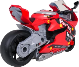 Motociklas pagamintas iš kokybiškų, patvarių medžiagų, turi patogią nešimo rankeną, didelį judančių ratukų komplektą ir realistiškas kėbulo detales. Efektai apima priekinius žibintus, galinius žibintus, variklio garsus ir unikalų išmetimo dūmų efektą papildžius vandens. Puiki dovana smalsiems vaikams.