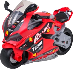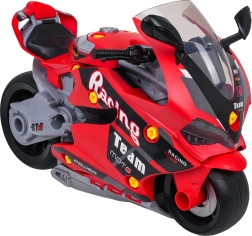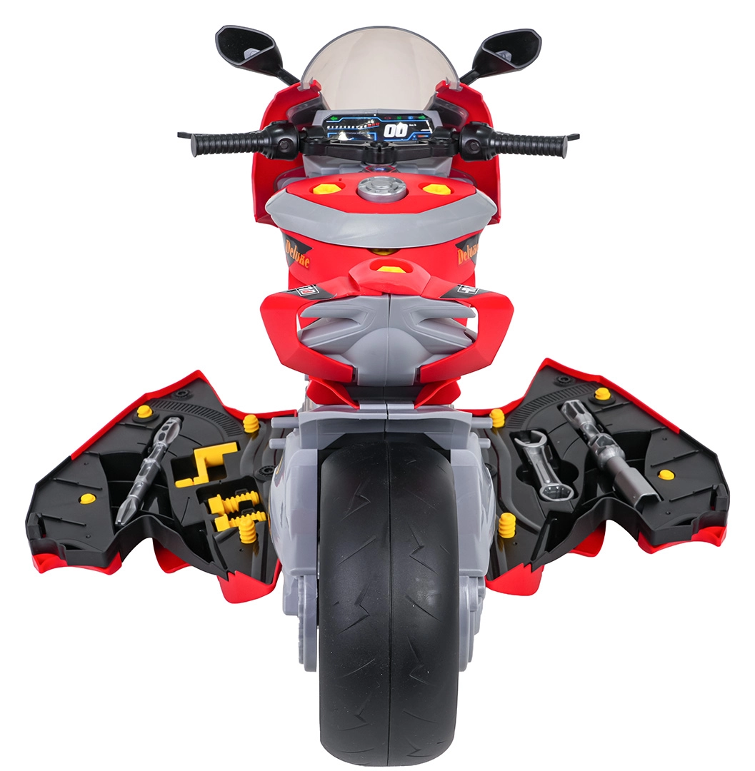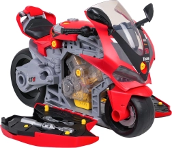 Šis sumaniai sukurtas žaislas sujungia motociklą vaizduotei lavinti ir mechanines dirbtuvėles mažiesiems meistreliams. Atidarius šoninius skydelius atsiveria šviečiantys variklio stūmokliai, kuriuos galima išimti ir tyrinėti. Vaikai žaismingai susipažįsta su pagrindiniais mechanikos principais, kartu lavindami smulkiąją motoriką ir įgūdžius.