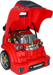 Šis edukacinis rinkinys įtraukia vaikus į automobilių pasaulį – nuo variklio dalių atsukimo ir surinkimo iki važiavimo simuliacijos ir net tikrų „serviso“ darbų po kapotu. Visa tai sustiprina šviesos ir garso efektai – variklio bei signalo garsai, starto mygtukas, avarinė šviesa ir pavarų svirtis. Tvirtas plastikinis korpusas ir stumdomo automobiliuko funkcija papildomai padeda lavinti ėjimo įgūdžius ir pusiausvyrą.