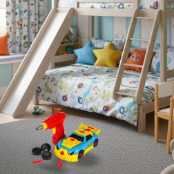 Vaikiškas akumuliatorinis suktuvas ir dideli plastikiniai varžtai leidžia pakartotinai montuoti ir išmontuoti. Puikiai tinka smulkiajai motorikai ir kantrybei ugdyti.