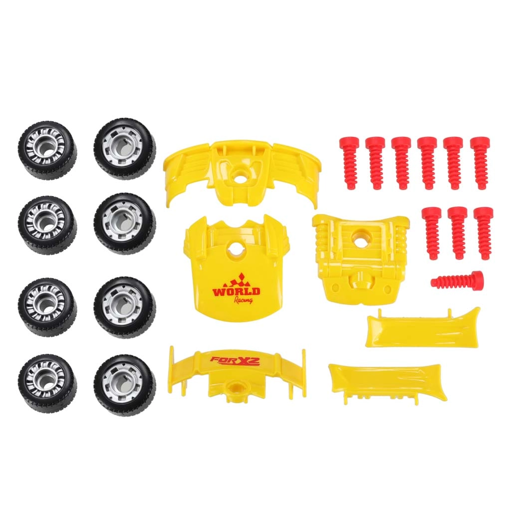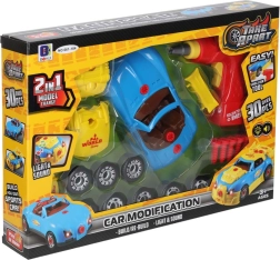 Iš kėbulo lengvai sukursite dvi skirtingas automobilio versijas. Vaikai išbandys tiuningą ir ratų bei panelių keitimą pagal savo fantaziją.