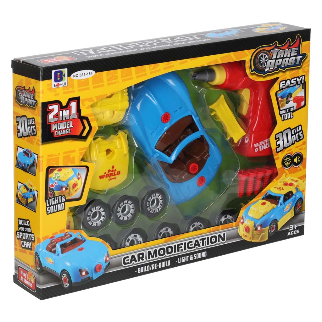 Spalvingo sportinio automobilio konstruktorius suteikia vaikams pramogą ilgam. Dėl pridėto akumuliatorinio suktuvo mažos rankos gali automobilį ardyti ir vėl surinkti, keisti kėbulo paneles bei ratus ir atrasti, kaip viskas veikia. Surinktas automobilis žavi šviečiančiomis šviesomis ir variklio garsais, kurie sustiprina tikrovišką žaidimo įspūdį.