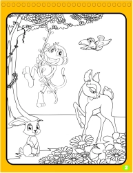 - 4 stebuklingi paveikslėliai su gyvūnėliais, kurie sudrėkinus nusidažo spalvomis.