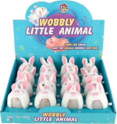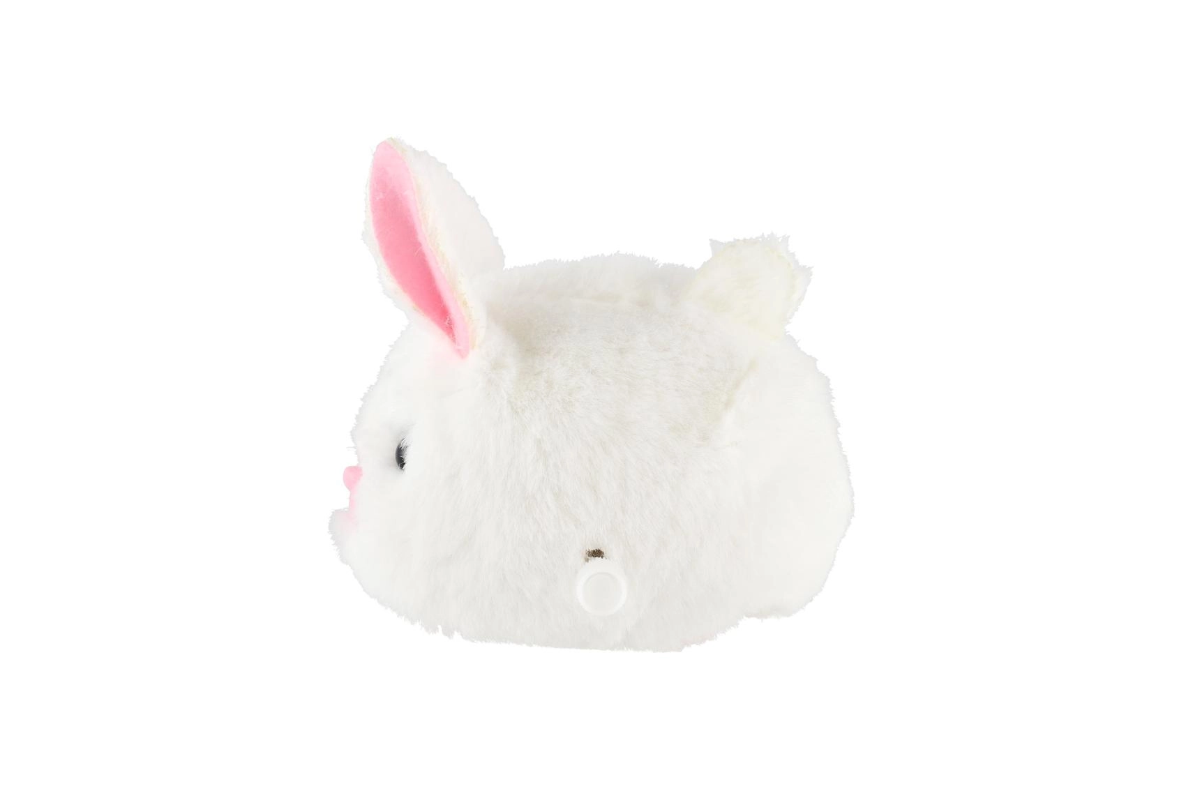 Šis minkštutis 8 cm dydžio triušiukas yra puikus draugas mažiesiems. Dėl paprasto prisukamo mechanizmo prisukus jis pajuda, vizgina ir realistiškai imituoja tikrą triušiuką. Švelnus pliušas malonus liesti ir kviečia glausti.