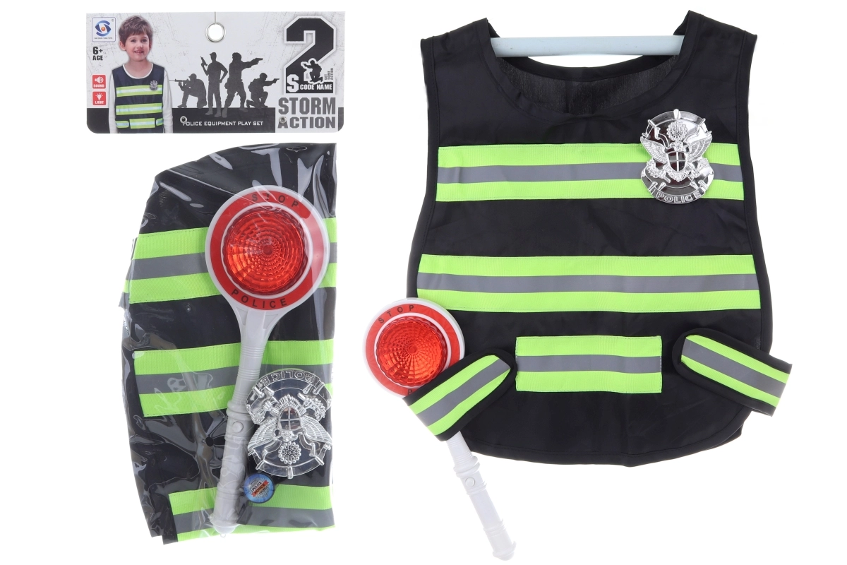 Šis policijos rinkinys – puikus pasirinkimas vaikams, kurie mėgsta veiksmo žaidimus ir gelbėjimo tarnybų pasaulį. Lengva liemenė su ženkleliu ir veikiantis šviečiantis pliaukštukas suteikia žaidimui realistiškumo ir linksmins ilgoms valandoms. Dėl pridedamų baterijų rinkinys iškart paruoštas naudojimui.