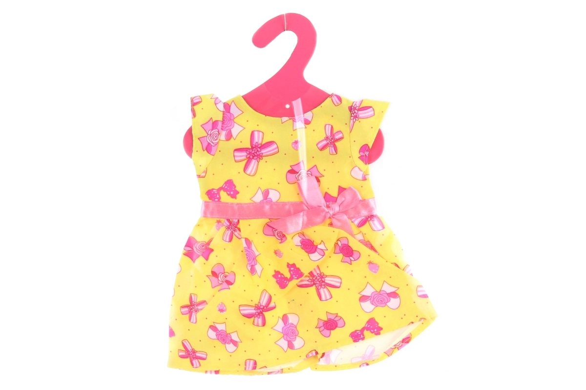 Padovanokite savo lėlei naują aprangą! Šios suknytės sukurtos lėlėms, kurių dydis apie 40–45 cm, o dėl lengvos poliesterio medžiagos jas paprasta aprengti ir nurengti. Puikiai tinka kasdieniams žaidimams ir vaiko fantazijos lavinimui.
