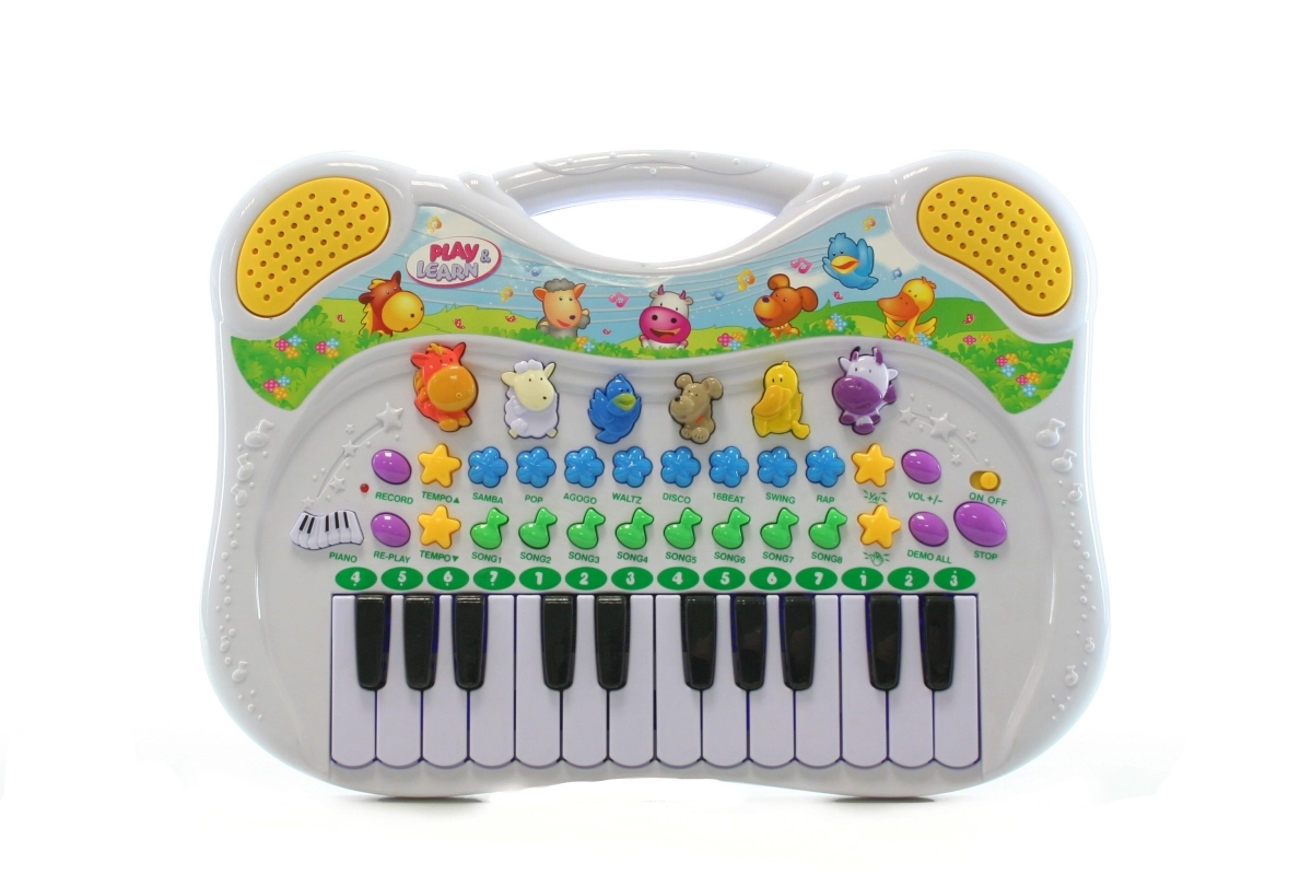 Smagus vaikiškas pianinas su baterijomis lavina muzikinę fantaziją ir smulkiąją motoriką. Siūlo įvairius ritmus, melodijas ir garsus, galimybę įrašyti ir atkurti savo kūrinius, o taip pat yra idealus vaikams nuo 2 metų.