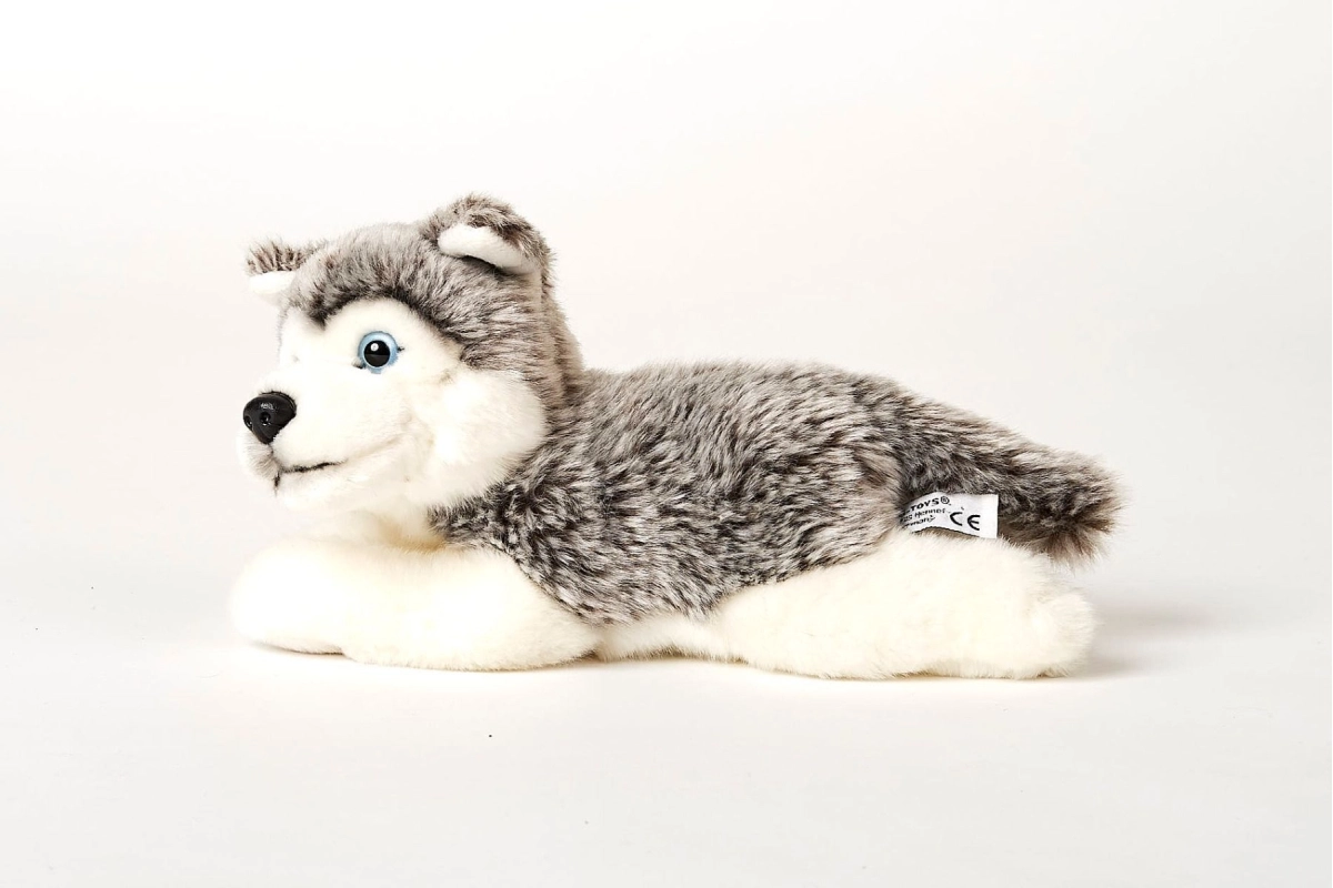 Žavingas plišinis haskis gulimoje pozoje, 23 cm ilgio, pradžiugins ir mažus, ir didelius gyvūnų mylėtojus. Pagamintas iš malonios medžiagos ir tinkamas jau nuo 0+. Šis ekologiškas bičiulis puikiai tinka glostyti, žaisti ir kaip vaikų kambario dekoracija.