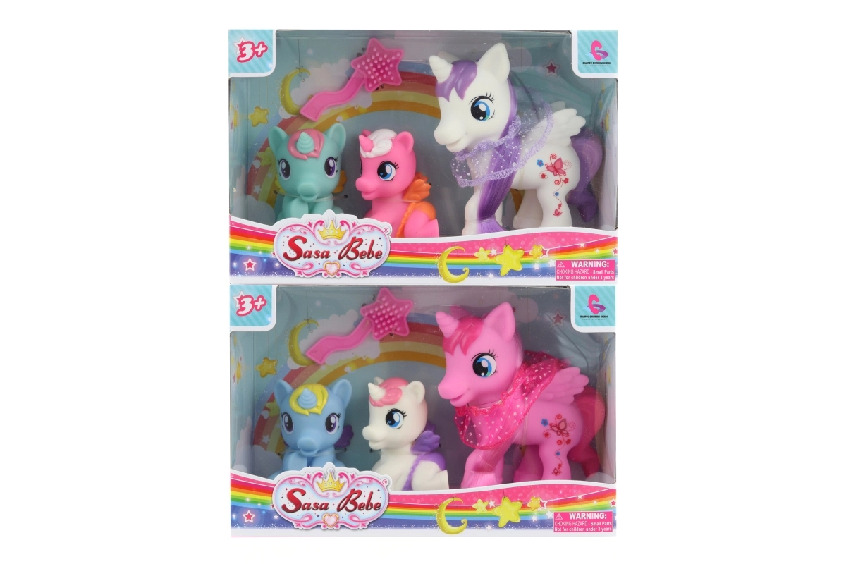 Mielas trijų vienaragių rinkinys pradžiugins kiekvieną mažą magiškų gyvūnėlių mylėtoją. Pakuotėje rasite ir patogias šukas jų karčiams šukuoti. Idealiai tinka lavinti vaizduotę ir smulkiąją motoriką vaikams nuo 3 metų. Kompaktiški pakuotės matmenys 20,5 × 13,5 × 6 cm puikiai tinka ir kelionėms.
