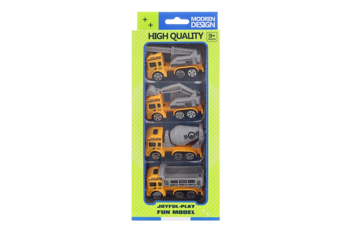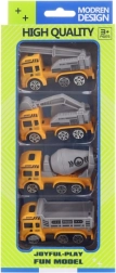 Šiame rinkinyje yra keli skirtingi statybiniai automobiliai su laisvąja eiga, kurie suteiks vaikams valandų valandas kūrybiško žaidimo. Kiekviena transporto priemonė pagaminta iš kokybiško plastiko ir patogiai telpa vaiko rankoje. Dėl saugaus apdirbimo tinka vaikams nuo 3 metų.