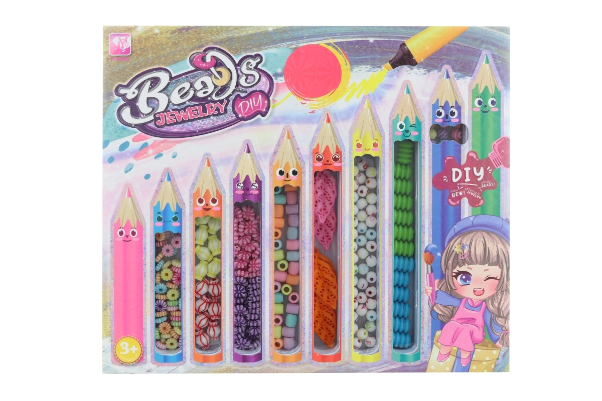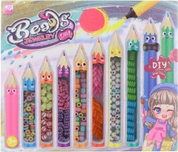 Palaikykite vaikų fantaziją ir kantrybę su ryškiaspalviu karoliukų rinkiniu originaliame pieštuko formos įpakavime. Dėl įvairių formų ir dydžių vaikai lengvai kuria vėrinius, apyrankes ar pakabukus ir lavina smulkiąją motoriką bei kūrybiškumą.