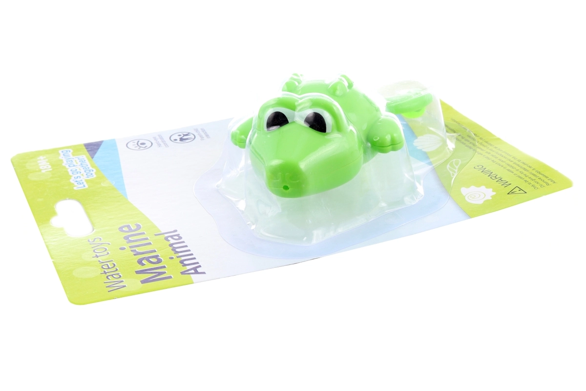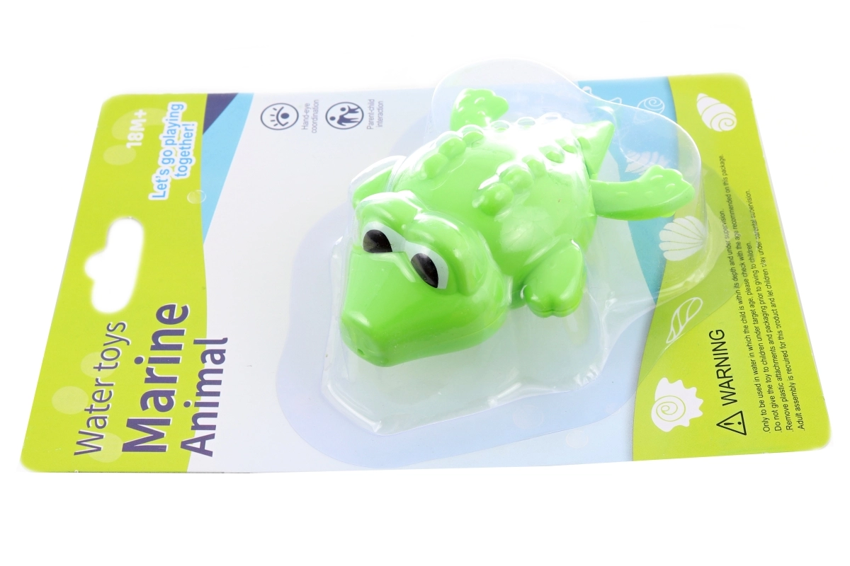 Linksmas vonios žaislas patiems mažiausiems – vyniojamas plastikinis krokodilas, kuris prisukus plaukia pats. Idealiai tinka smulkiajai motorikai lavinti, saugiam vandens žaidimui ir smagiam maudymuisi jau nuo 18 mėnesių.