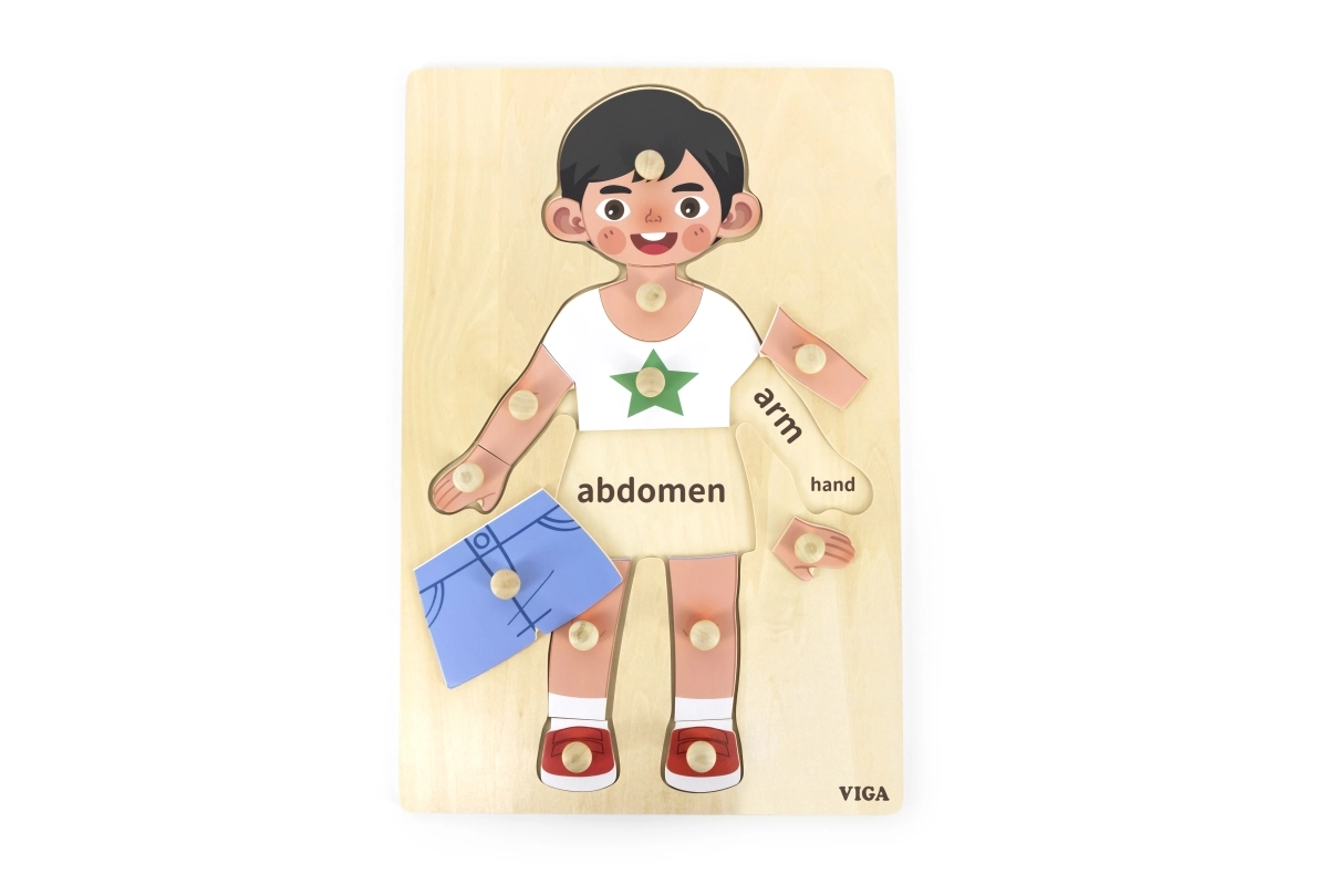 Ši kokybiška medinė dėlionė su berniuko motyvu yra puikus pasirinkimas vaikų įgūdžiams lavinti. Dėka 12 tvirtų dalių vaikai lavins akies–rankenos koordinaciją ir tuo pačiu mokysis atpažinti atskiras kūno dalis. Tinka žaidimams namuose ir darželiuose.