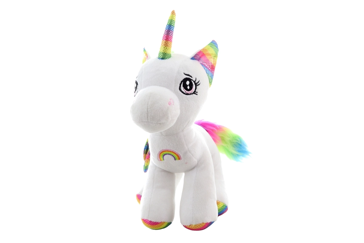 Šis baltas plišinis vienaragis su vaivorykštinėmis detalėmis sukurtas švelniems apkabinimams. Minkštas paviršius, siuvinėtos akys ir saugi konstrukcija be smulkių nuimamų dalių paverčia jį tobulu draugu tiek kūdikiams, tiek vyresniems vaikams. Išsiskiria miela išvaizda ir lengva konstrukcija kasdieniams žaidimams ir ramiam užmigimui.