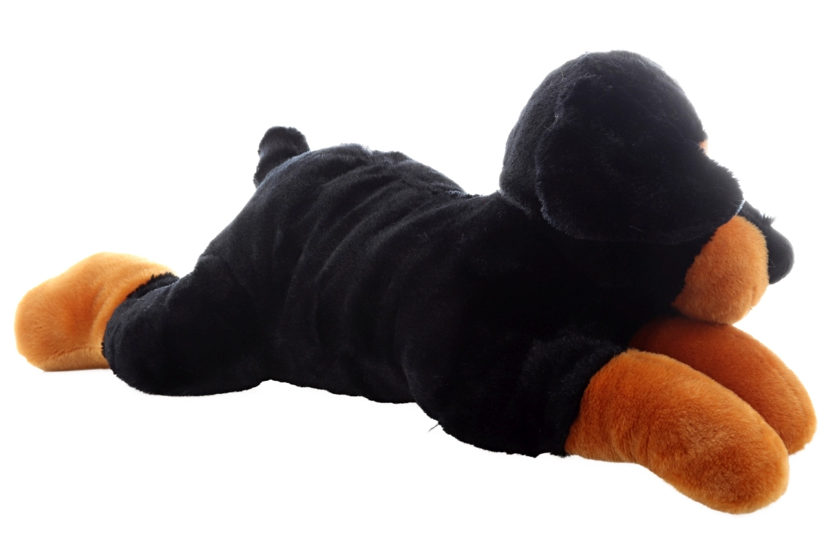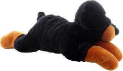 Šis pliušinis šuo realistiškų spalvų deriniu – su juodu kailiuku ir rudomis letenėlėmis bei nosyte – pasirengęs begaliniams apkabinimams. Dėl švelnaus paviršiaus ir kokybiško užpildo jis yra malonus liesti ir puikiai prisitaiko prie vaiko glėbio.