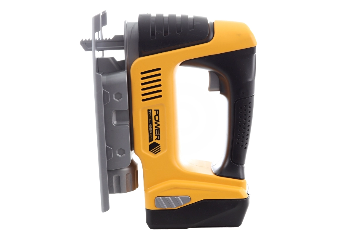 Šis vaikiškas siaurapjūklis yra puikiai sumažinta tikro įrankio versija. Dėl šviesos ir garso efektų bei judančio pjūklo jis atrodo labai realistiškai, tačiau išlieka saugus vaikų žaidimams. Puikus papildymas vaikiškai dirbtuvei ir žaidimams „mažieji meistrai“.