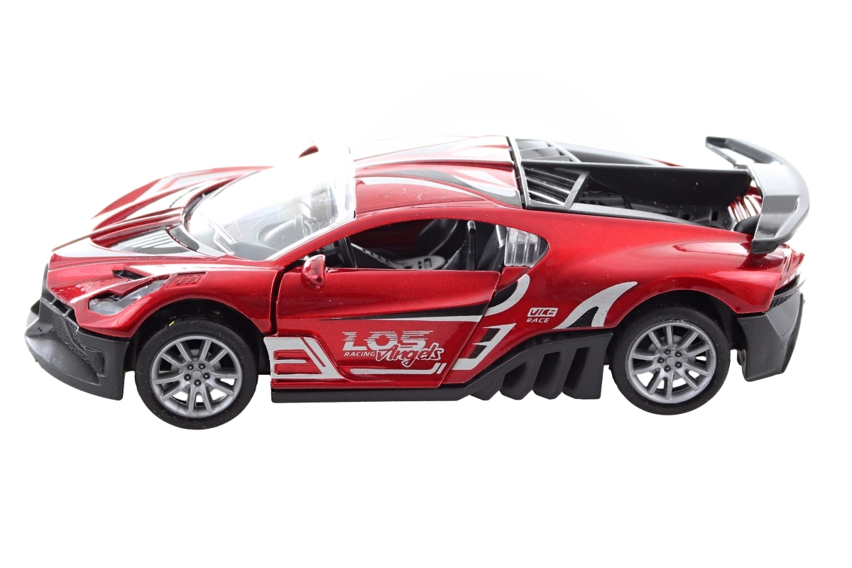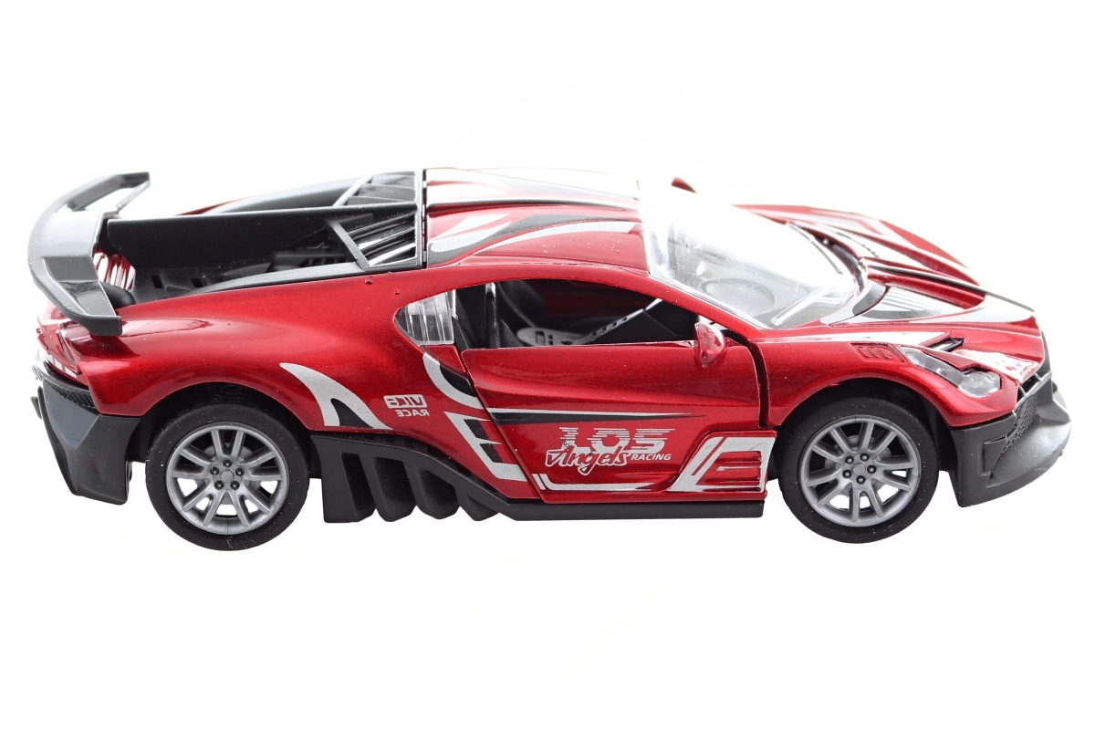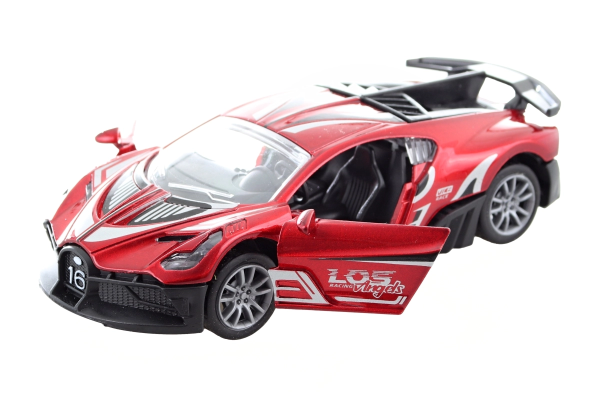 Šis stilingas metalinis automobiliukas suteikia realistišką važiavimo patirtį dėl atbulinės eigos mechanizmo – tereikia užtempti, paleisti ir automobilis šauna pirmyn. Atidaromos durys, preciziškos kėbulo detalės ir sportinis dizainas su spoileriu daro šį modelį puikiu pasirinkimu tiek mažiesiems lenktynininkams, tiek aistringiems kolekcininkams.