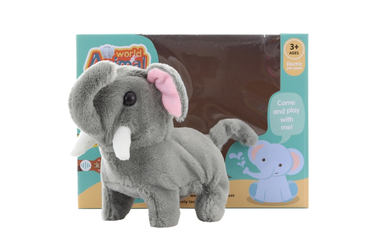 Įjungus šis vaikštantis pliušinis dramblys mielai juda ir skleidžia garsus, kurie vaikams sukelia šypseną. Plastikinės konstrukcijos ir minkšto pliušinio paviršiaus derinys užtikrina patvarumą ir malonų pojūtį žaidžiant.