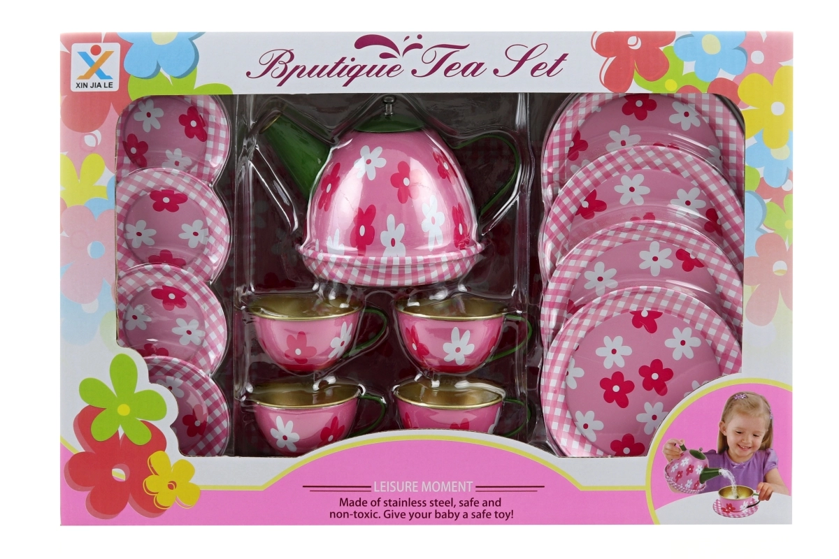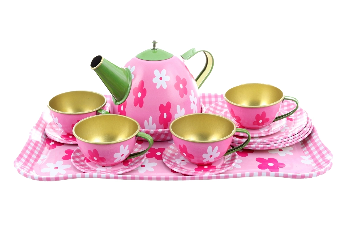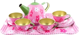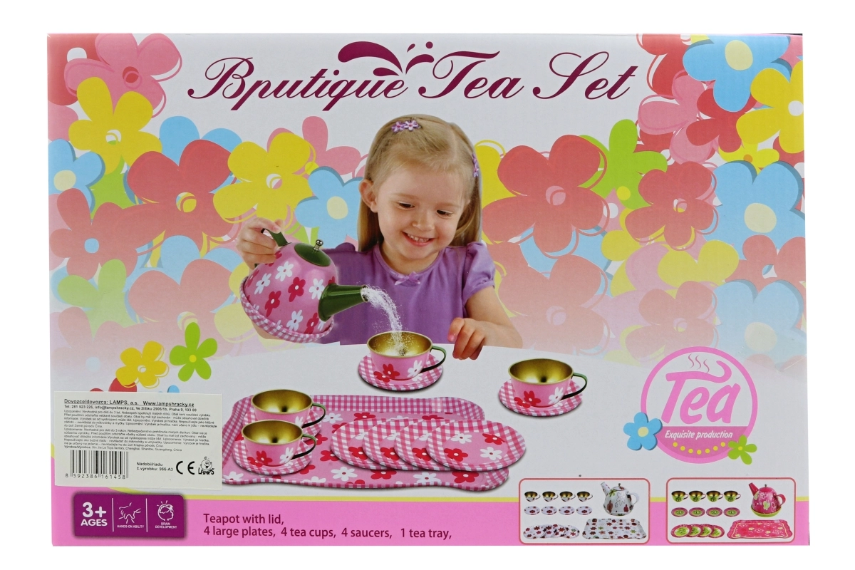 Stilingas skardinis arbatinuko rinkinys su subtiliu gėlių motyvu pradžiugins kiekvieną mažąją šeimininkę. Jame yra viskas tobulam arbatos vakarėliui – nuo arbatinuko iki lėkštučių ir padėklo. Rinkinys lengvas, patvarus ir saugus vaikams nuo 3 metų. Komplektinė sudėtis, gėlių dizainas ir patvari skardinė konstrukcija užtikrina valandas linksmybių ir lavina vaikų fantaziją.