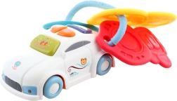 Smagūs vaikiški automobilių rakteliai pradžiugins mažuosius vairuotojus realistiškais efektais. Įdėjus baterijas jie skleidžia variklio užvedimo garsą, garsinį signalą, užrakinimo garsą ir groja linksmą melodiją. Lengvas ir patvarus plastikinis žaislas vaikams nuo 12 mėnesių lavina klausą, smulkiąją motoriką ir vaizduotę.