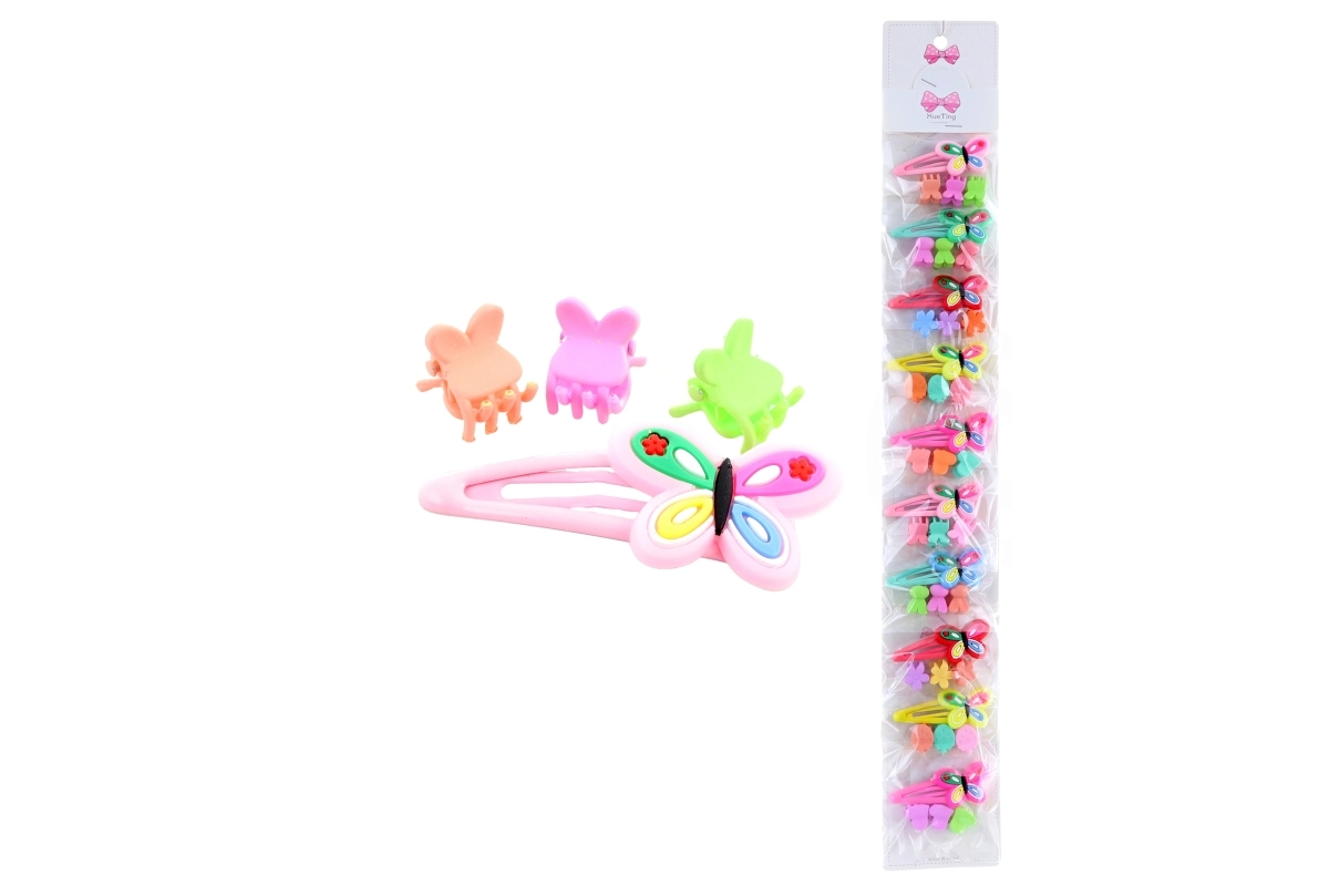 Praktiškas rinkinys kasdieniam plaukų sutvarkymui ir mažiems šventiniams šukuosenų akcentams. Kiekvienoje pakuotėje yra 1 segtukas su drugelių motyvu ir 3 mini kriauklelės segtukai, viskas kompaktiškai supakuota maišelyje. Idealu greitam sruogų susegimui, dekoratyviam stiliui ir švelnioms vaikiškoms bei moteriškoms šukuosenoms.