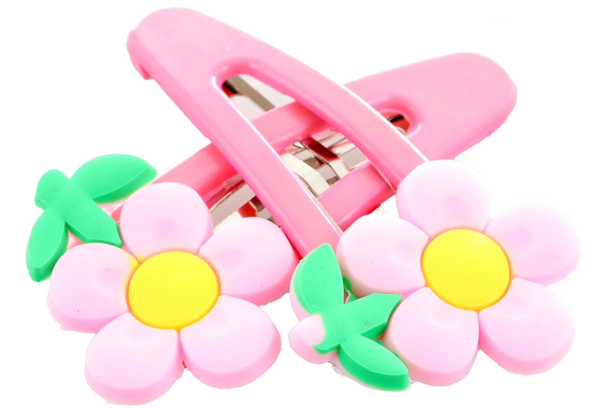 Suteikite šukuosenai subtilaus mergaitiško žavesio su gėlytėmis puoštomis sponkomis. Jos lengvos, gerai laiko net plonus plaukus, o dėl skirtingų spalvų lengvai suderinsite su drabužiais ar aksesuarais. Tinka kasdienai – į mokyklą, žaidimų aikštelę – ir šventinėms akimirkoms.