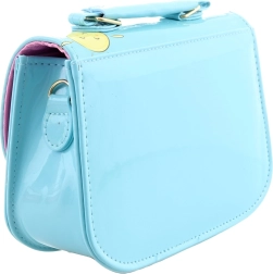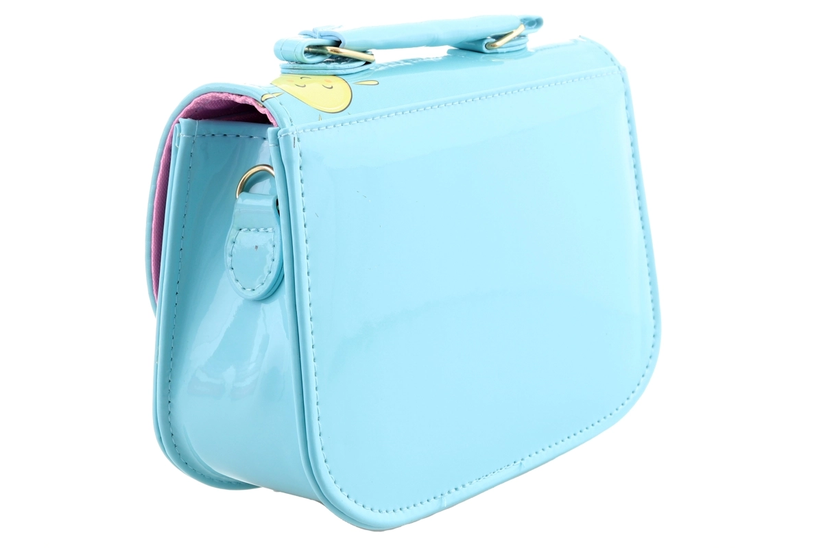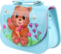 Žavinga vaikiška rankinė šviesiai mėlynos spalvos su meškučio motyvu pradžiugins mažąsias puošeivas. Ji turi blizgų, lengvai valomą paviršių, patogų užsegimą spaude ir vieną pagrindinį skyrių smulkmenoms. Kompaktiški matmenys 18 × 14 × 7 cm idealiai tinka nosinaitėms, mažiems žaisliukams ar aksesuarams. Gaminiu negalima žaisti kaip žaislu.