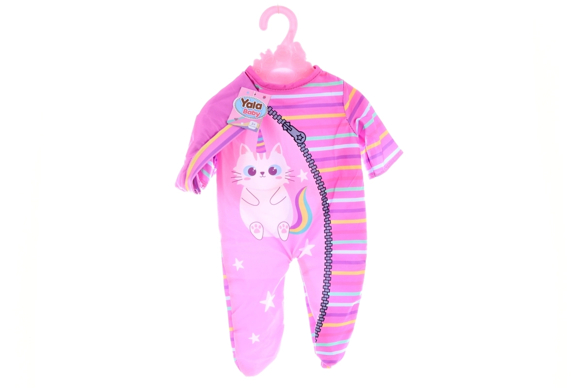 Mielas lėlytės rūbų rinkinys su kačiuko motyvu – patogus kombinezonas ir deranti kepurytė. Tinka maždaug 32 cm lėlėms, lengvai aprengiamas ir puikiai tinka vaikų žaidimams bei vaizduotei lavinti. Minkšta medžiaga, praktinis pakabinamas įpakavimas ir mielas dizainas pradžiugins kiekvieną mažąją mamytę.