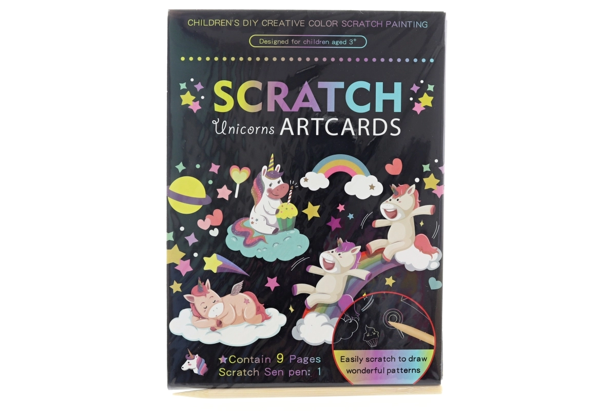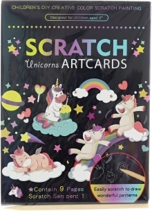 Šis kūrybinis rinkinys leidžia smagiai išbraižyti paveikslėlius su mėgstamu vienaragių motyvu. Naudodami pridėtą medinį įrankį švelniai atskleisite spalvotus sluoksnius ir sukursite įspūdingus paveikslėlius, tinkančius eksponuoti ar dovanoti.