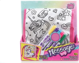 Kūrybiška piešiama rankinė su mielu vienaragio motyvu pradžiugins kiekvieną kūrybingą vaiką. Komplekte yra reguliuojamas rožinis dirželis ir 5 spalvos, kad būtų galima iškart spalvinti. Rankinė turi patogų užsegimą lipduku ir puikiai tinka smulkmenoms bei kelionėms. Skatina kūrybiškumą, lengva naudoti ir pramoga vaikams nuo 3 metų.