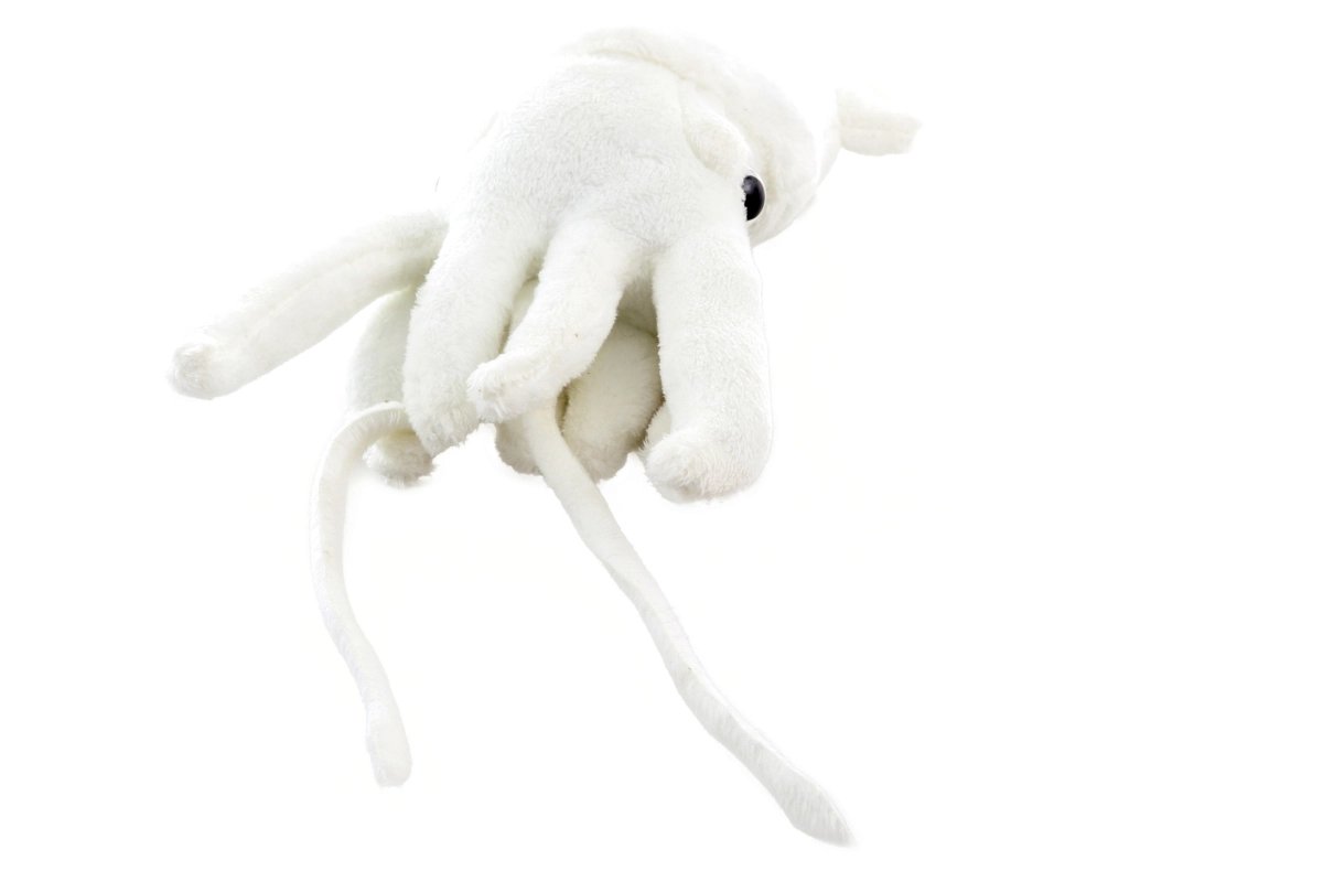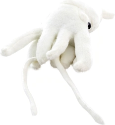 Ši balta pliušinė kalmarė pradžiugins mažus ir didelius jūrų gyvūnų mylėtojus. Realistiška forma su keliais čiuptuvais ir ryškia akimi skatina vaizduotę ir palaiko kūrybišką, išradingą žaidimą. Maloni, švelni medžiaga daro ją puikiu miegamojo draugu ir miela vaikų kambario dekoracija.