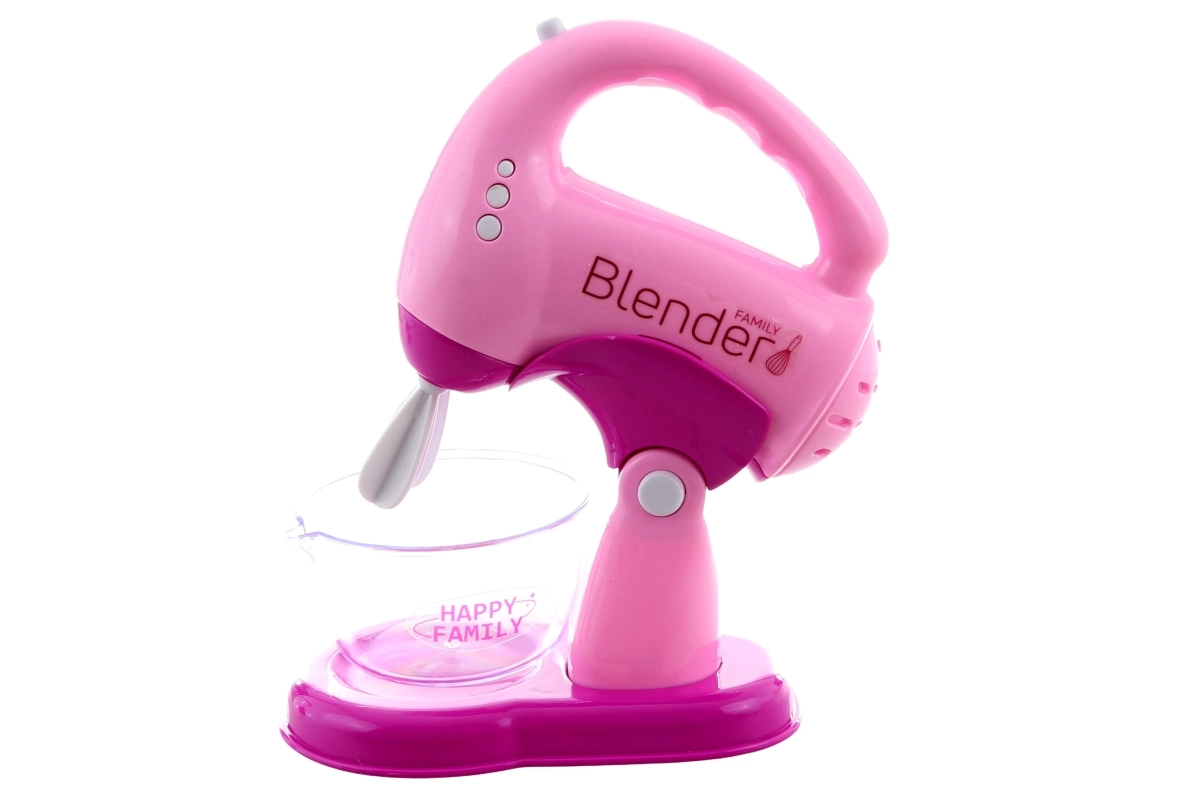 Rožinis maišytuvas su vienu mygtuku, permatomu ąsočiu ir matoma „geležte“ žaidimo metu sukasi ir šviečia.