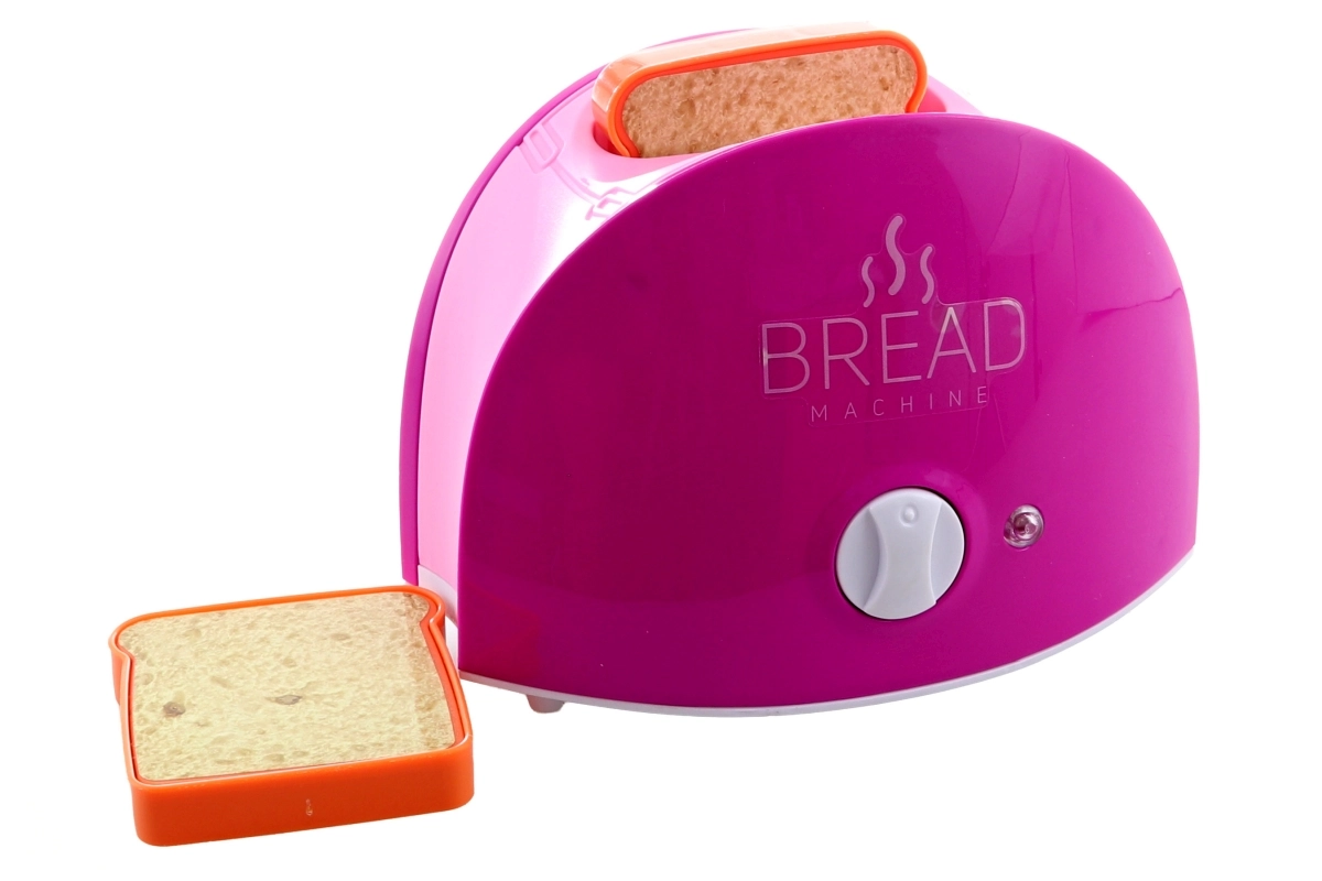 Vaikiškas skrudintuvas šviečia, leidžia linksmus garsus ir po trumpo laiko pats išstumia skrebučius – kaip tikras.