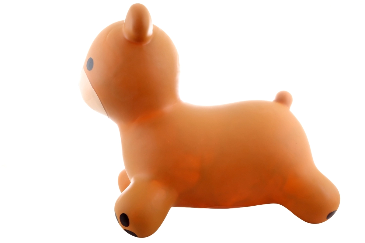 Linksmas guminis šokinėjimo žaislas meškiuko formos suteiks vaikams valandų valandas aktyvaus žaidimo ir pusiausvyros treniruočių. Dėl stabilios konstrukcijos ir maždaug 30 cm sėdynės aukščio jis idealiai tinka mažesniems vaikams. Pridedama ir pompa lengvam pripūtimui. Maksimali apkrova 50 kg, saugios plačios kojelės ir minkštas paviršius patogiam ir saugiam šokinėjimui.