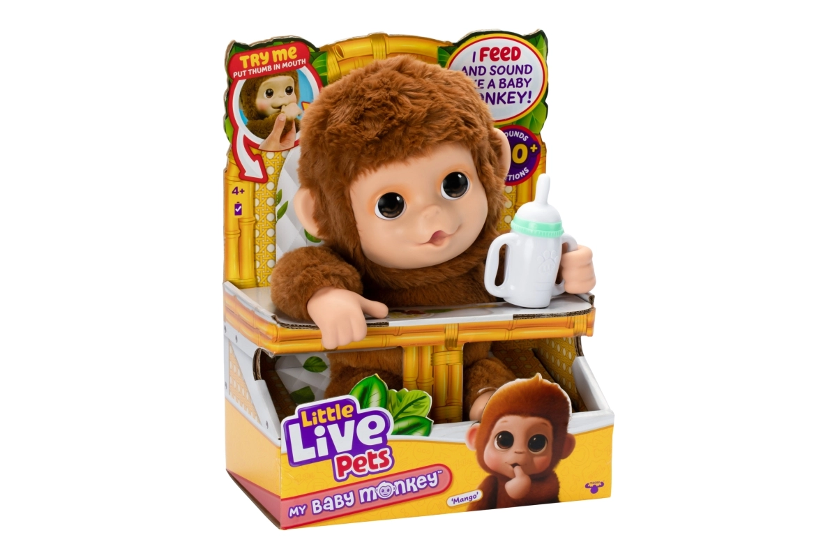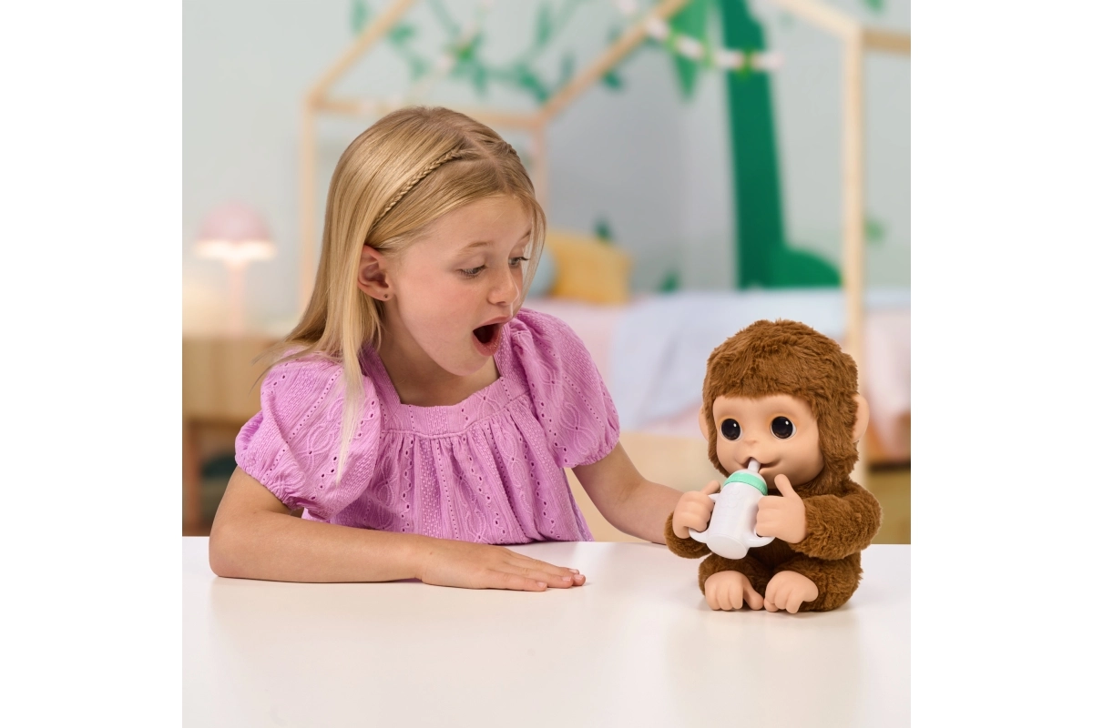 Atraskite naują žaidimų draugą – interaktyvų beždžioniuką Mango iš Little Live Pets. Šis mielas beždžioniukas reaguoja į prisilietimą ir judesį, turi daugiau nei 50 garsų ir reakcijų, moka ropoti, kabėti žemyn galva, o realistiškai judantis veidukas suteikia kiekvienam žaidimui žavesio. Jis minkštas liesti, mėgsta glėbesčiavimą, galite jį maitinti buteliuku arba leisti čiulpti nykštį – idealus draugas kūrybiškiems žaidimams.